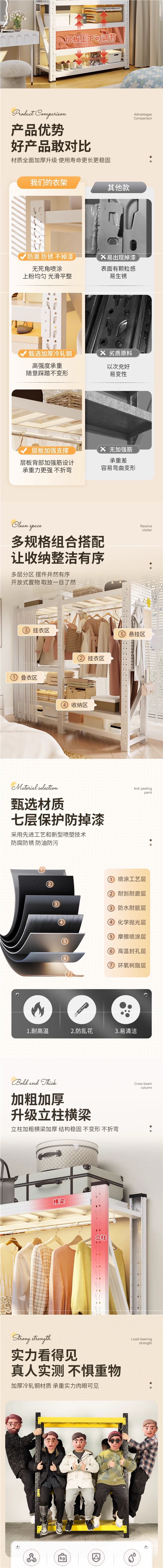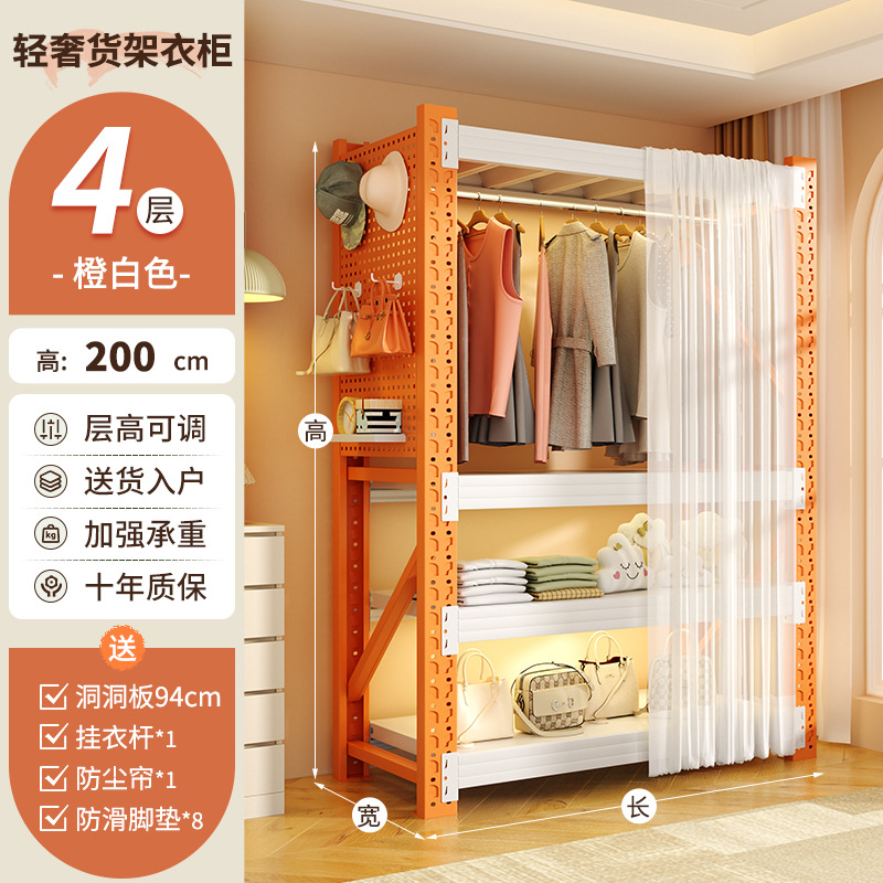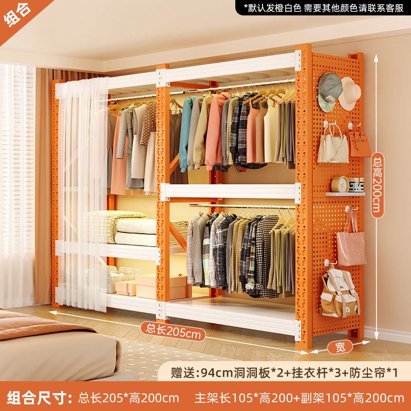 • 주황색과 흰색 조합 모델: 전체 길이 205*깊이 50*높이 200cm [전체 천공판 + 방진 커튼*1 + 옷장레일*3 포함]