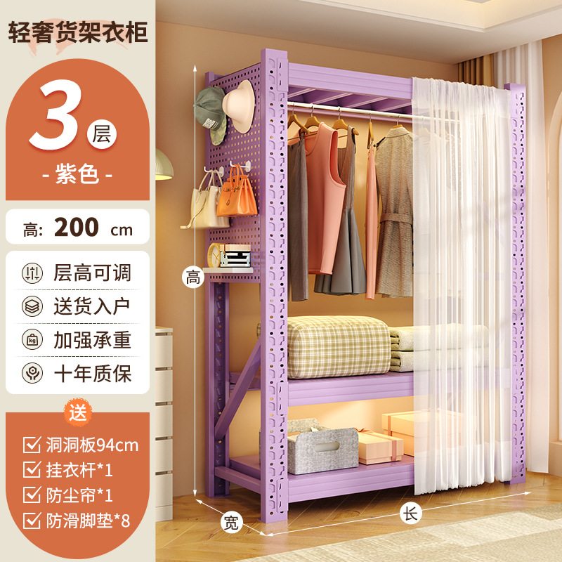 • 보라색 조합 모델: 전체 길이 205*깊이 60*높이 200cm [전체 천공판 + 방진 커튼*1 + 옷장레일*3 포함]