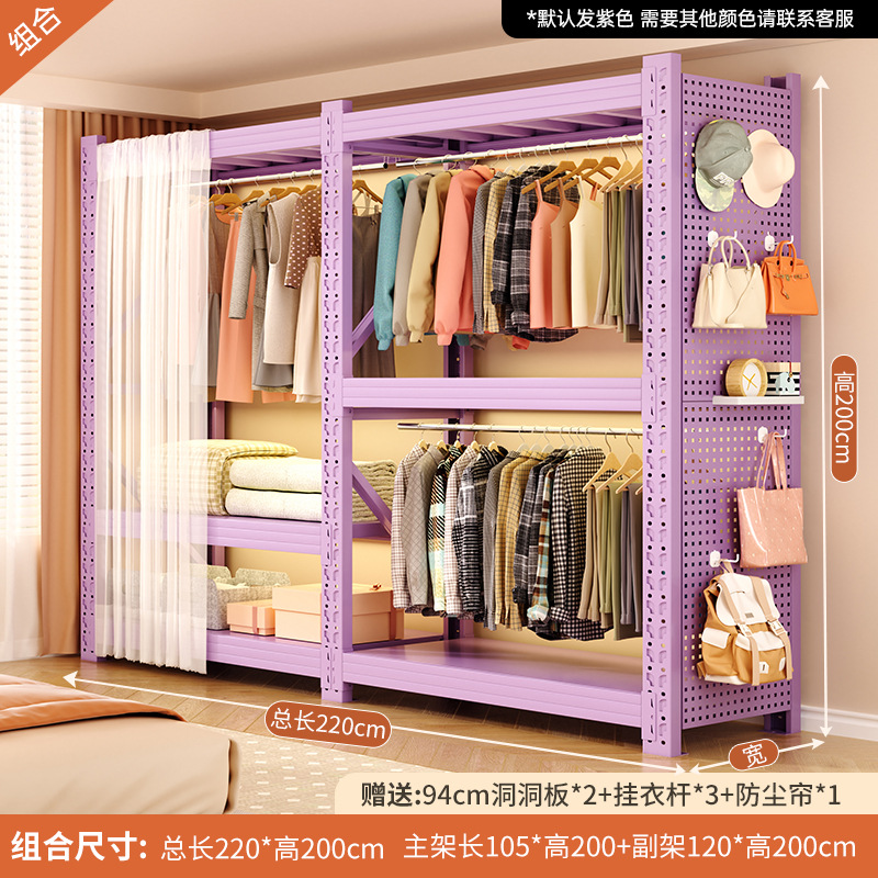 • 보라색 조합 모델: 전체 길이 220*깊이 50*높이 200cm [전면 천공판 + 방진 커튼*1+옷장레일*3 포함]