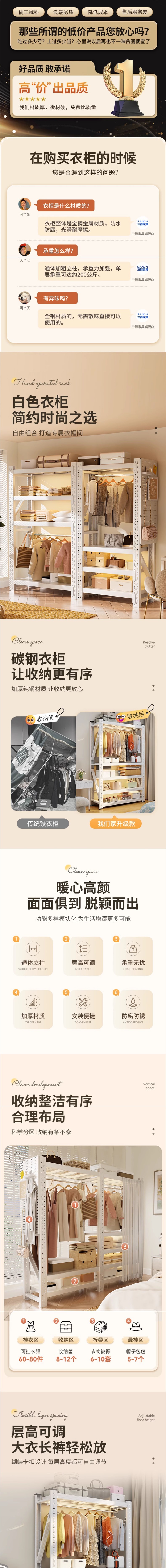 • 주황색과 흰색 조합 모델: 전체 길이 220*깊이 60*높이 200cm [전면 천공판 + 방진 커튼*1 + 옷장레일*3 포함]