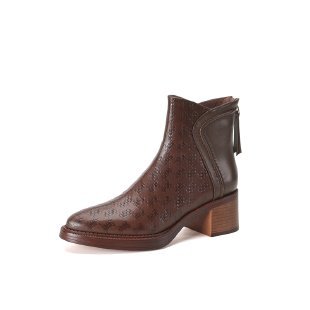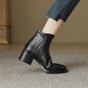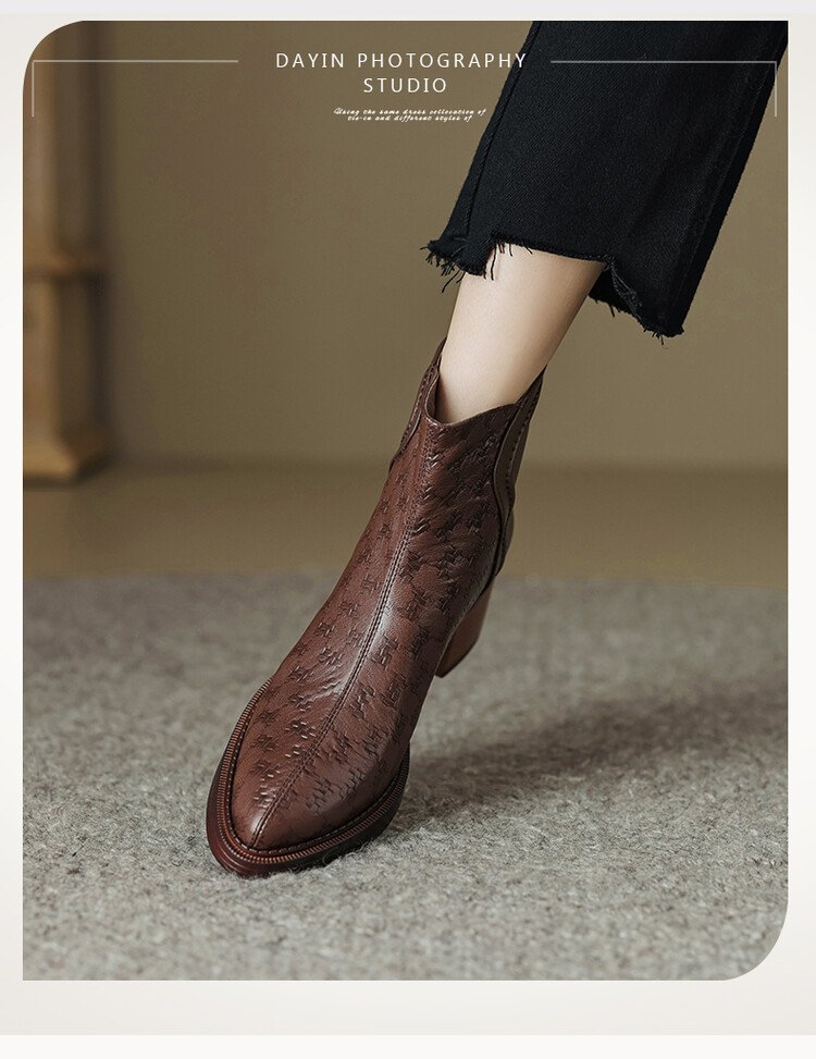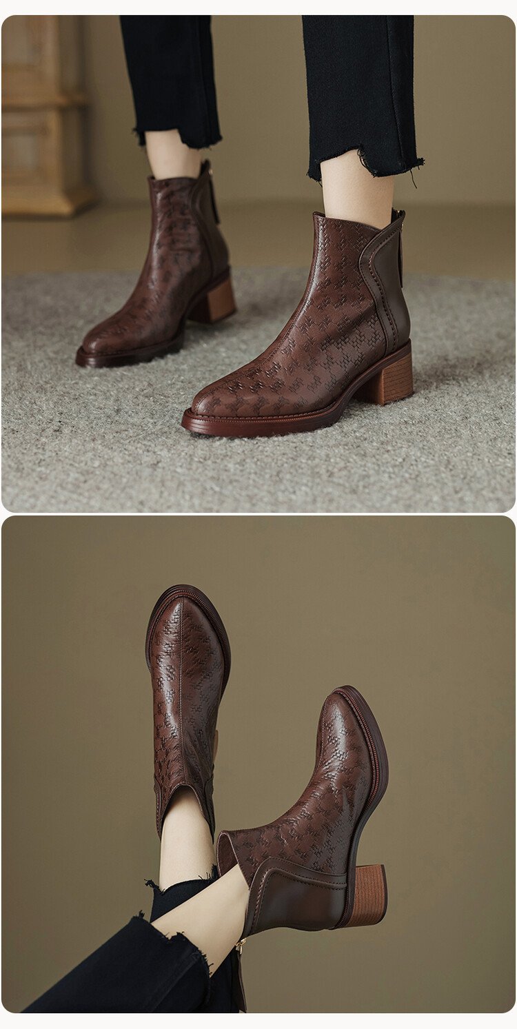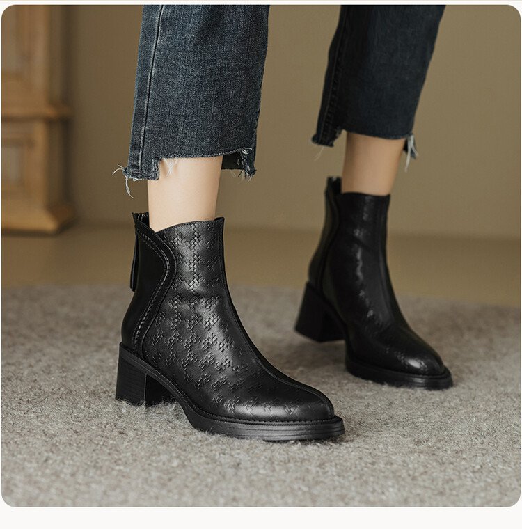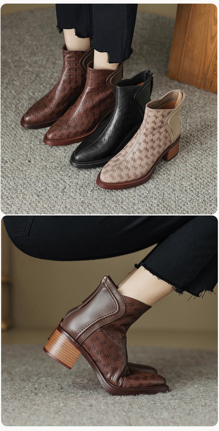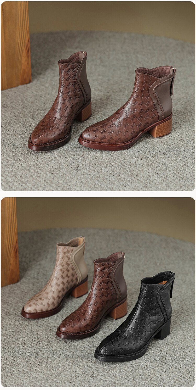 여성용 서양식 짧은 부츠, 봄, 가을 싱글 부츠, 둥근 발가락, 중간 굽, 하이힐 부츠, 두꺼운 굽, 천연 가죽, 뒷지퍼, 양가죽 플러스 벨벳 살구색스토어 가기