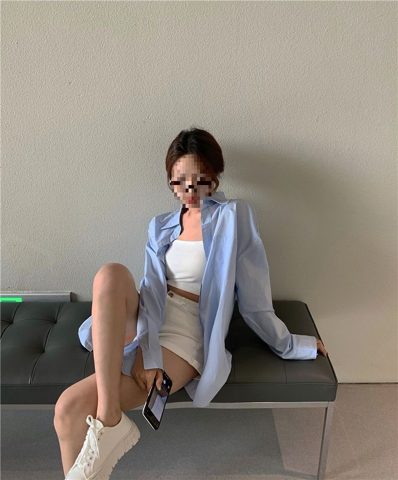 디자인 롱탑 루즈자켓 블루셔츠 여성 긴팔셔츠 캐주얼 한국판 미디엄 아우터 봄, 가을스토어 가기