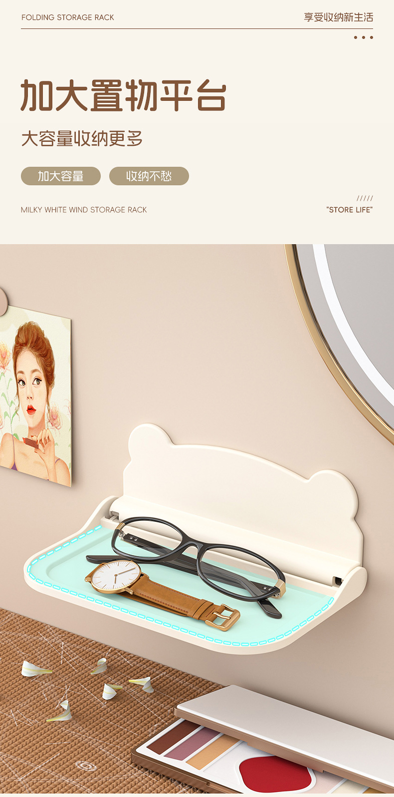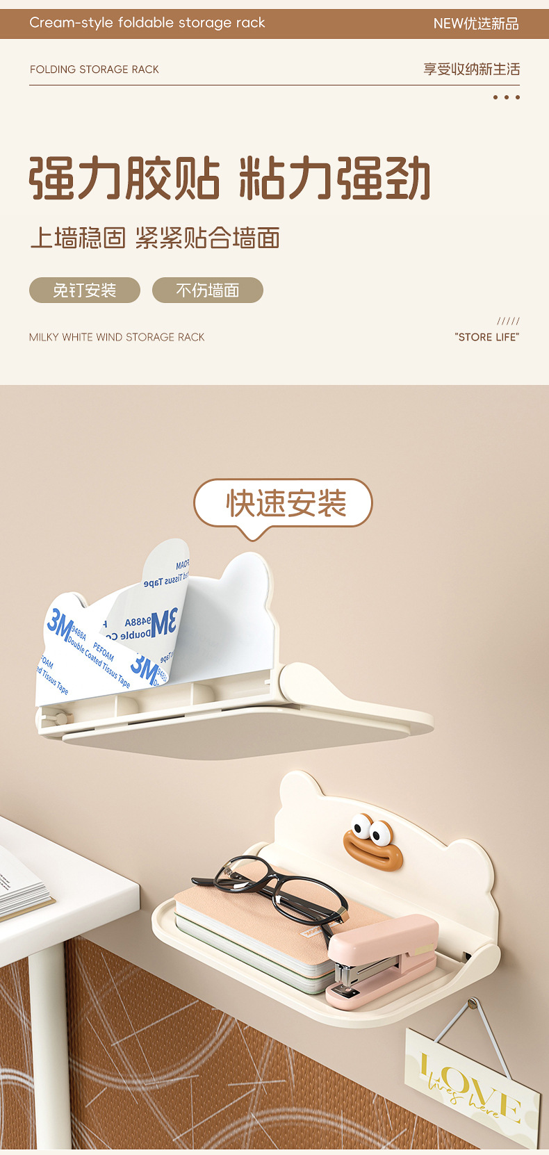 접이식 벽걸이형 욕실 휴대폰 벽걸이형 화장실 침대 옆 펀치 없는 기숙사 수납 선반 셋톱박스 선반