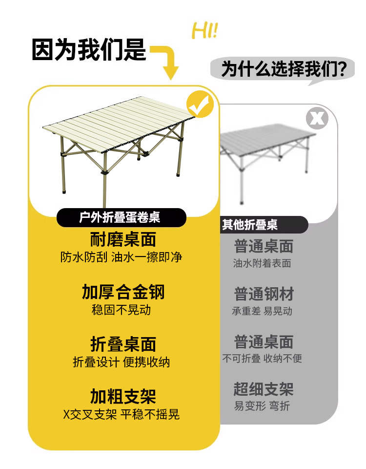 • 95x55x50 노란색 긴 테이블 [수납 가방 포함]