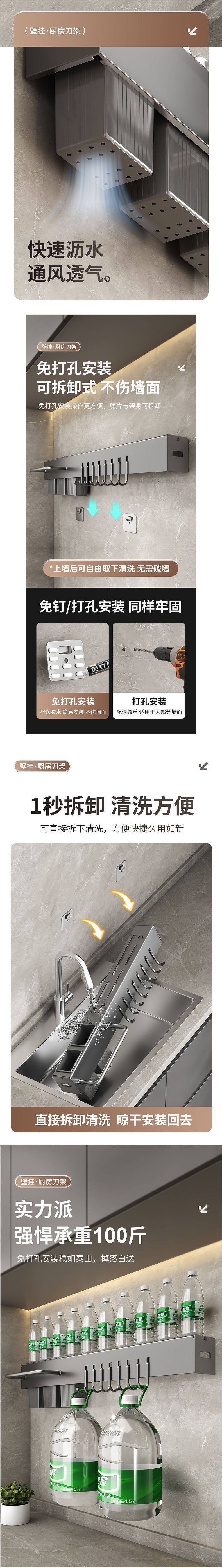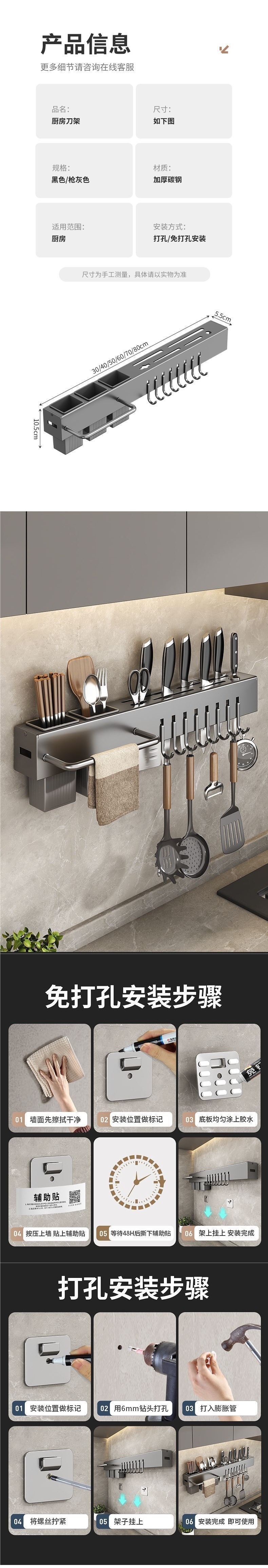 • 건그레이*[업그레이드된 두꺼운 버전]-50CM [칼홀더 + 젓가락홀더 2개 + 고리 8개 + 걸이봉]