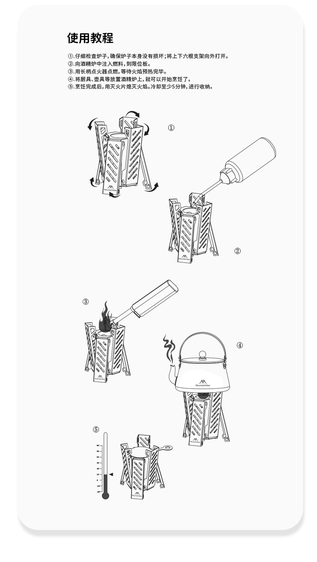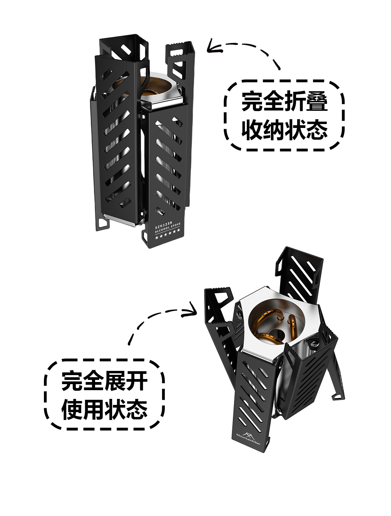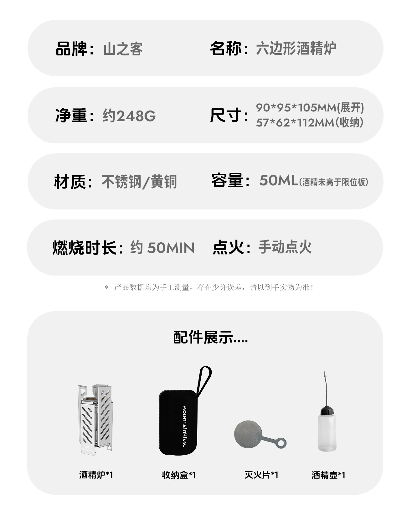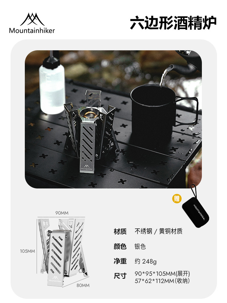 Mountain Guest 육각형 알코올 스토브 휴대용 스테인레스 스틸 접이식 스토브 헤드 야외 캠핑 화재 램프 빠른 오픈 알코올 램프스토어 가기