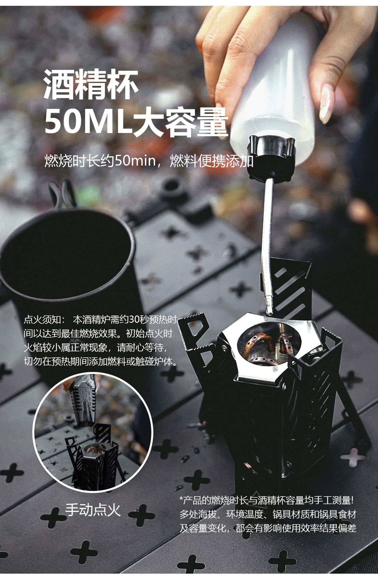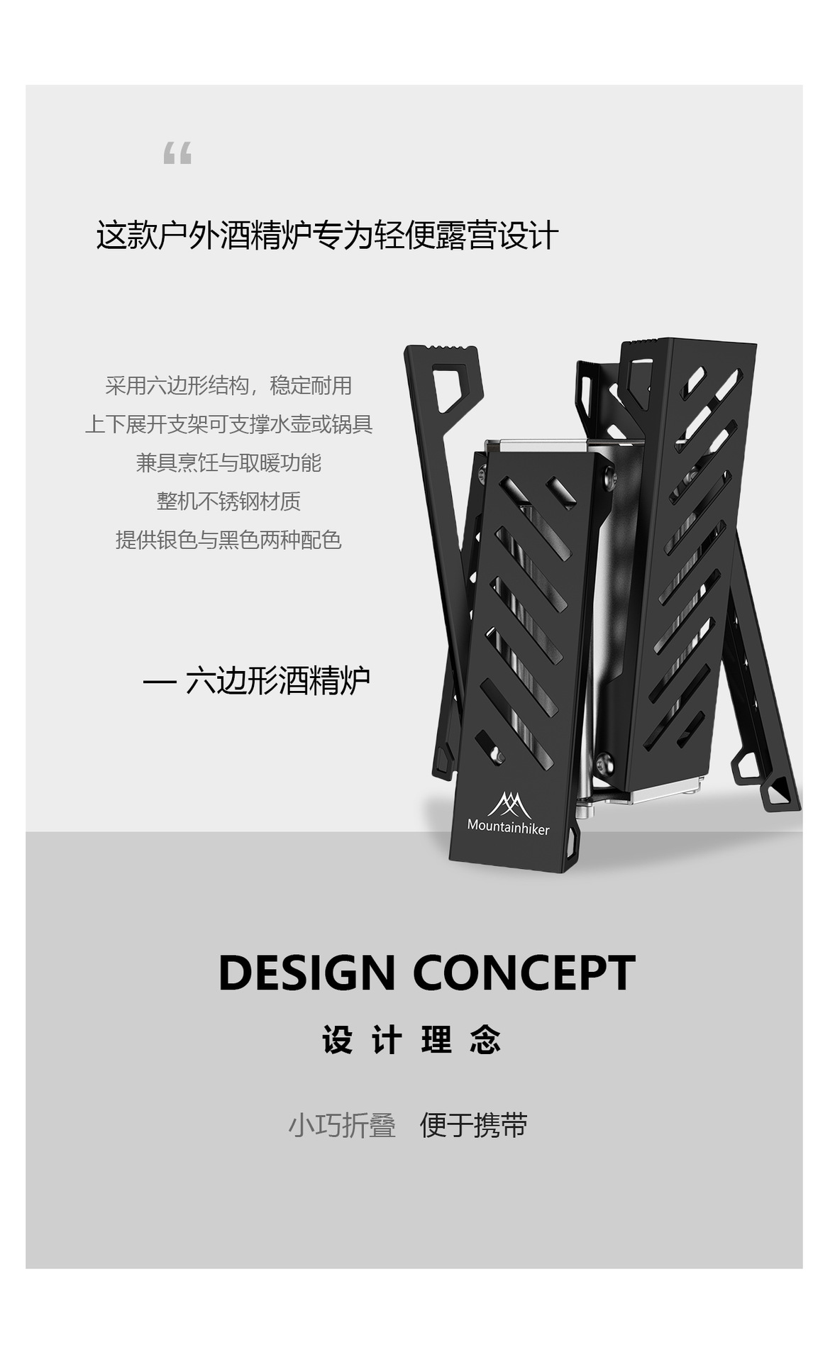 Mountain Guest 육각형 알코올 스토브 휴대용 스테인레스 스틸 접이식 스토브 헤드 야외 캠핑 화재 램프 빠른 오픈 알코올 램프