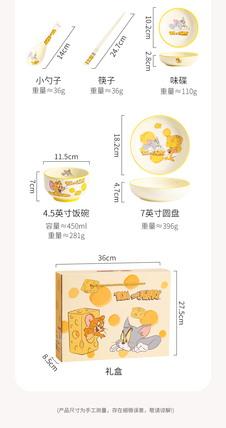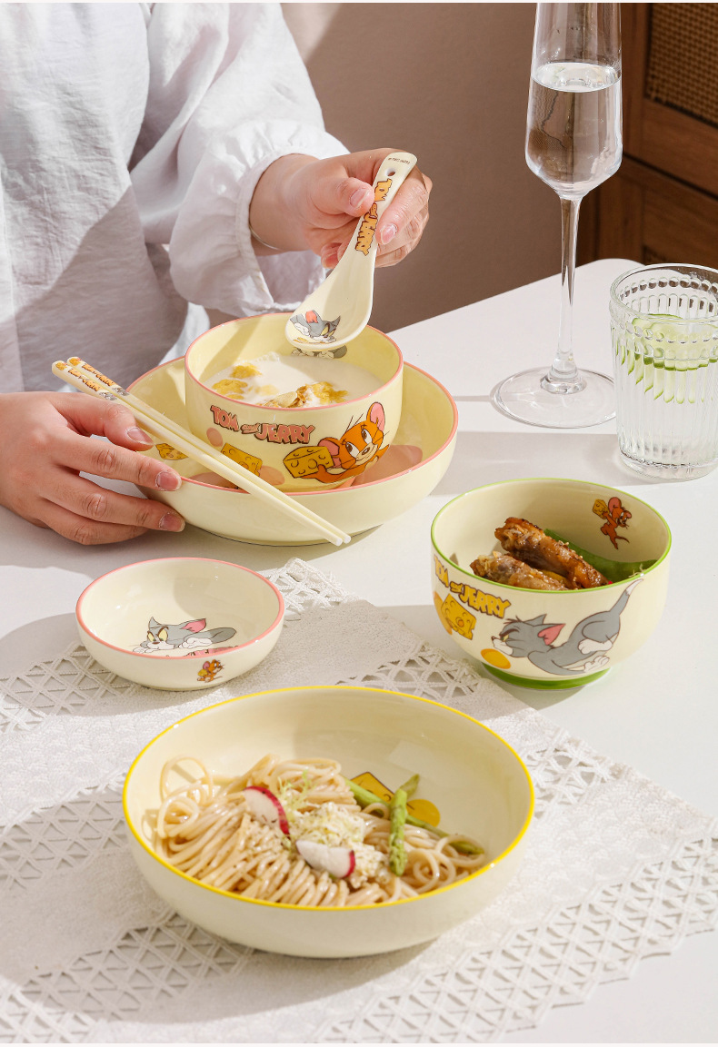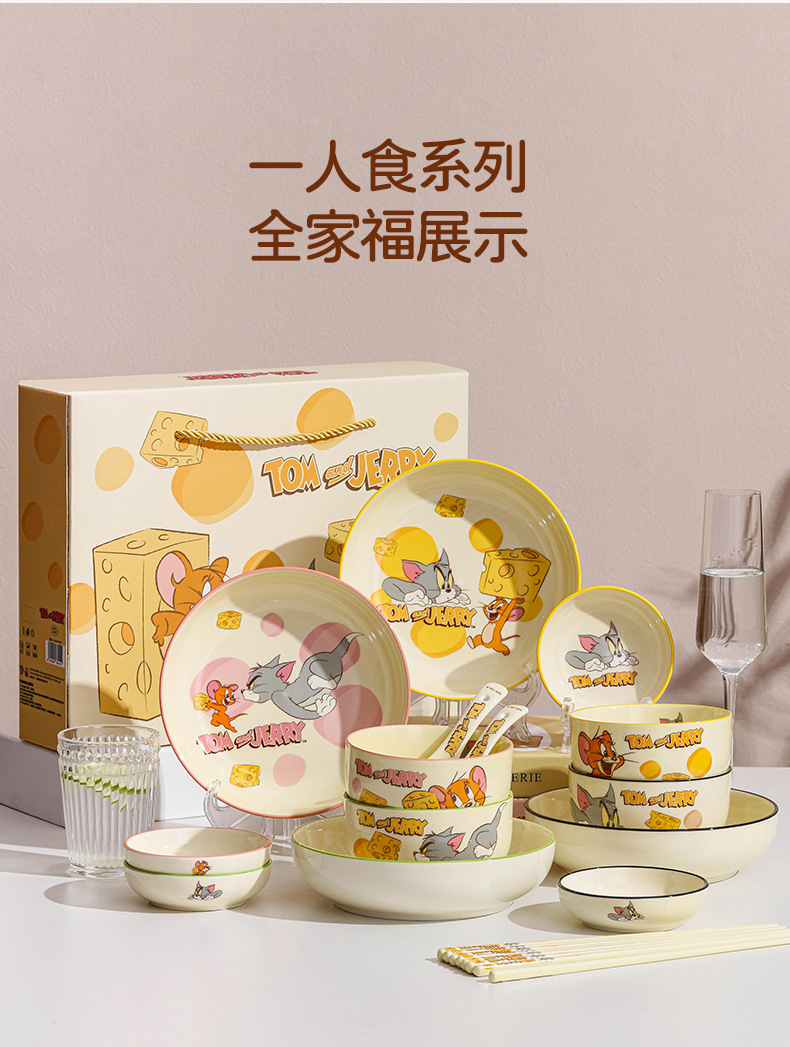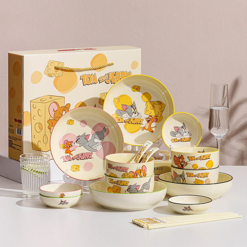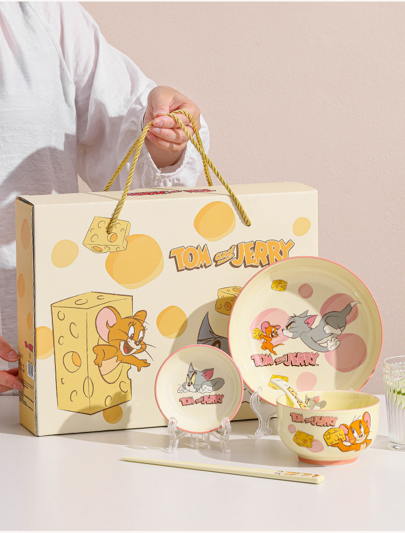 정품 톰과 제리 세라믹 식기 세트 만화 귀여운 고가치 기념품 그릇과 접시 선물 상자 생일 선물