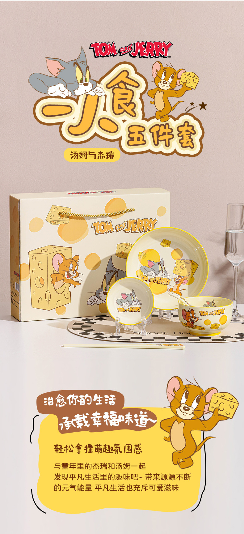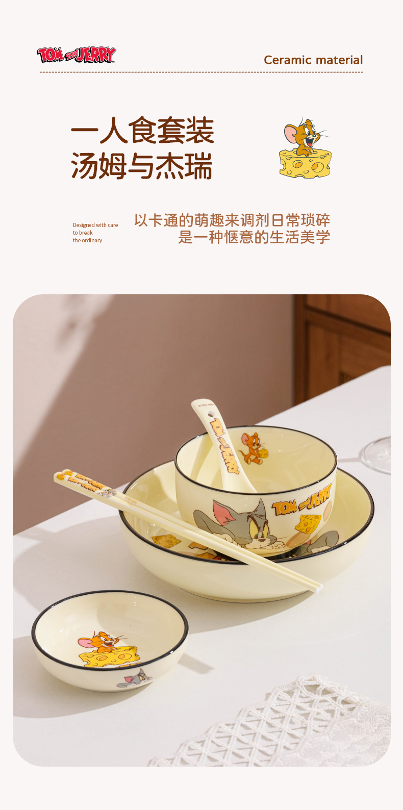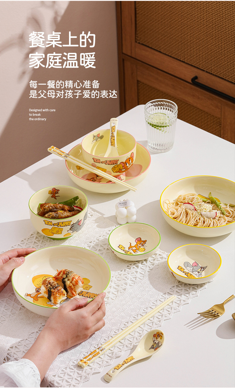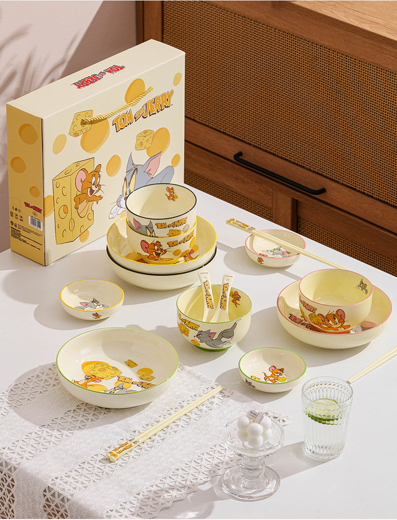 정품 톰과 제리 세라믹 식기 세트 만화 귀여운 고가치 기념품 그릇과 접시 선물 상자 생일 선물스토어 가기