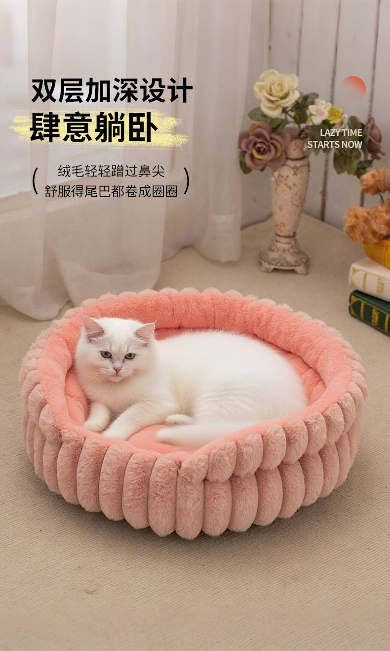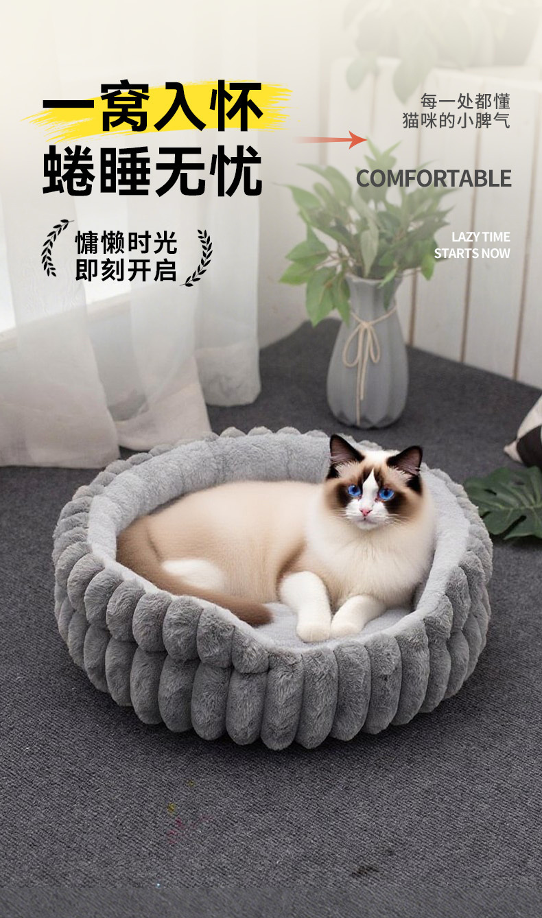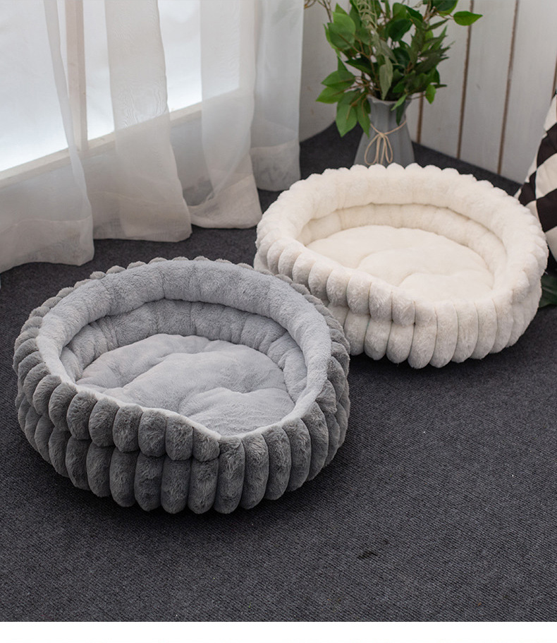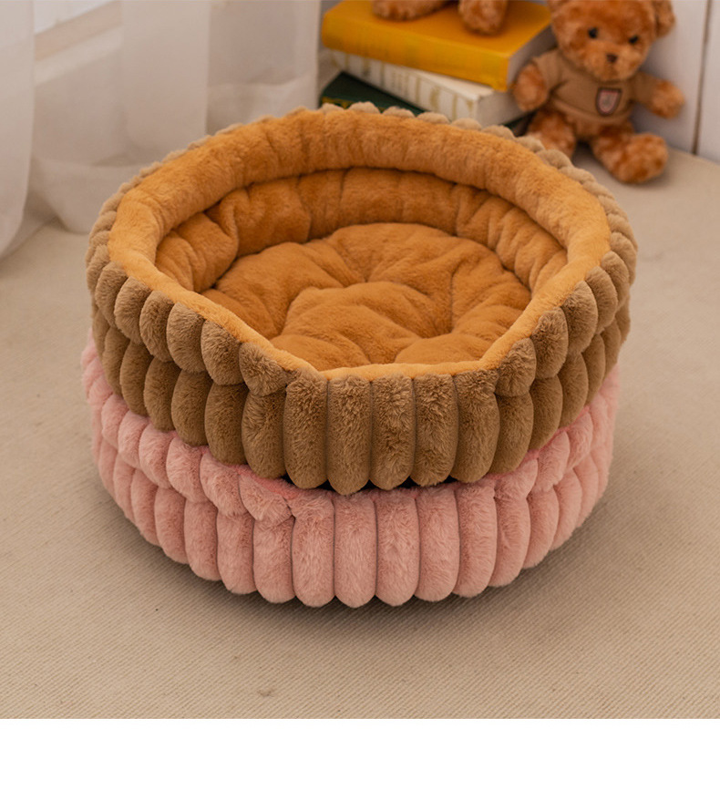 아마존의 새로운 스트라이프 라운드 네스트 대형 애완 동물 개집 작은 개와 고양이 개집 두꺼운 개 매트 방습 및 따뜻한 개 개집