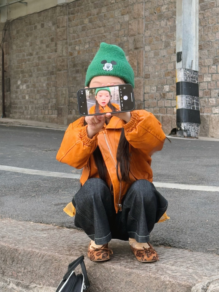 아동 코트 가을 의류 2025 새로운 스타일 소녀의 세련된 오토바이 가죽 코트 아기 짧은 노란색 재킷 탑스토어 가기