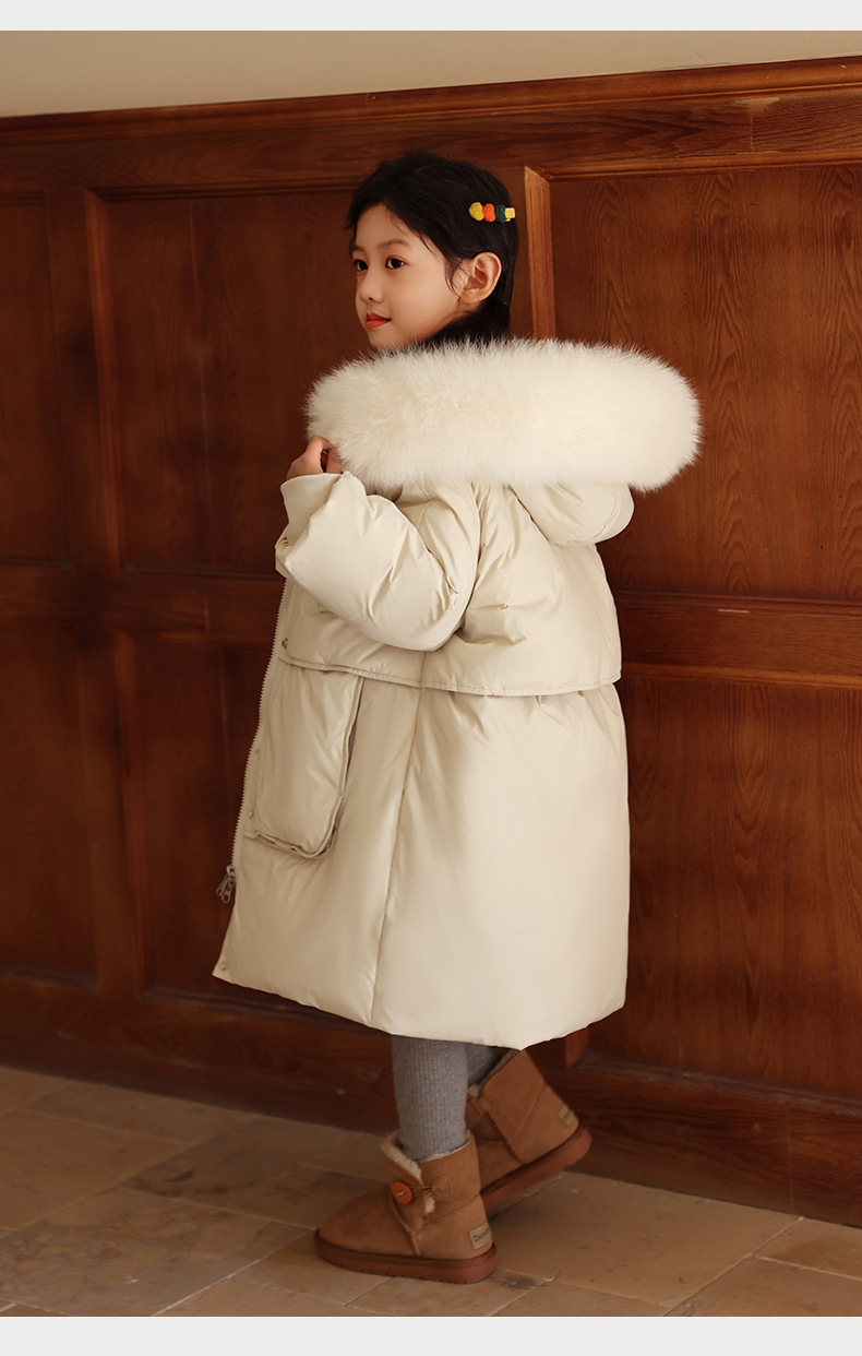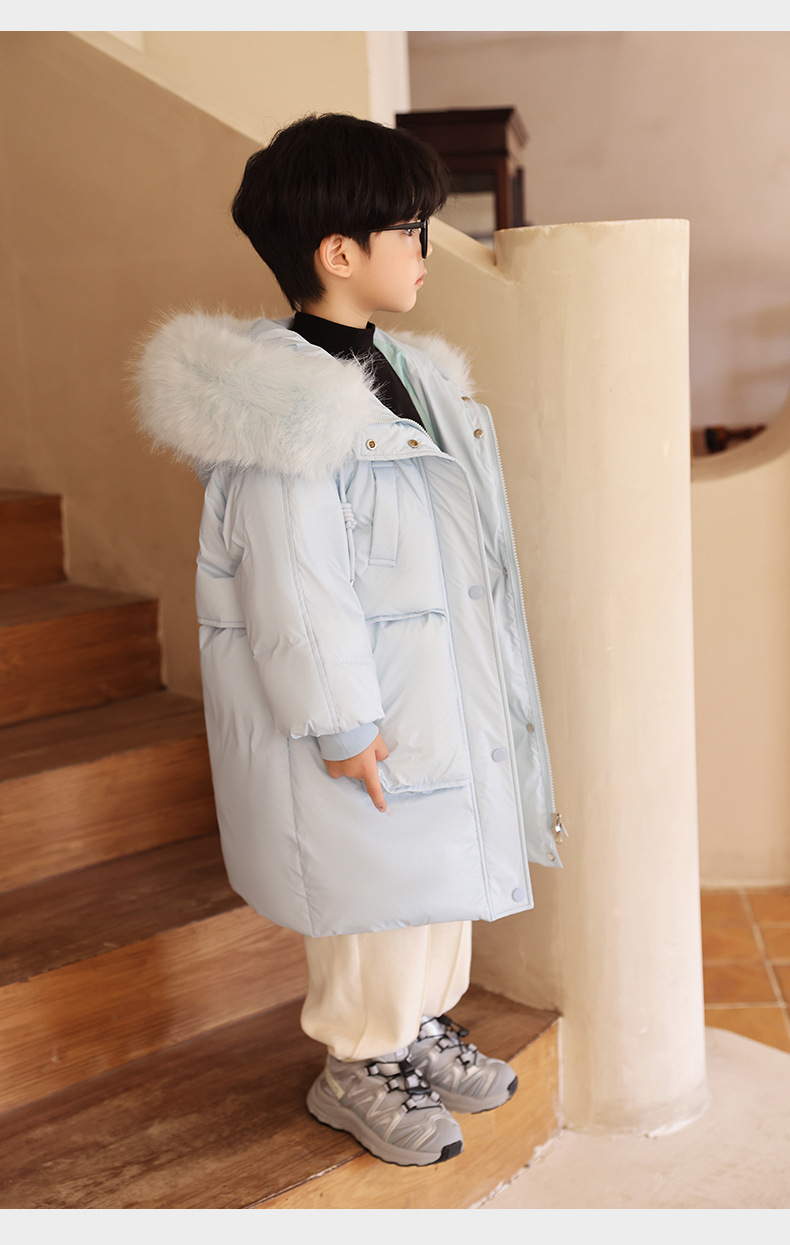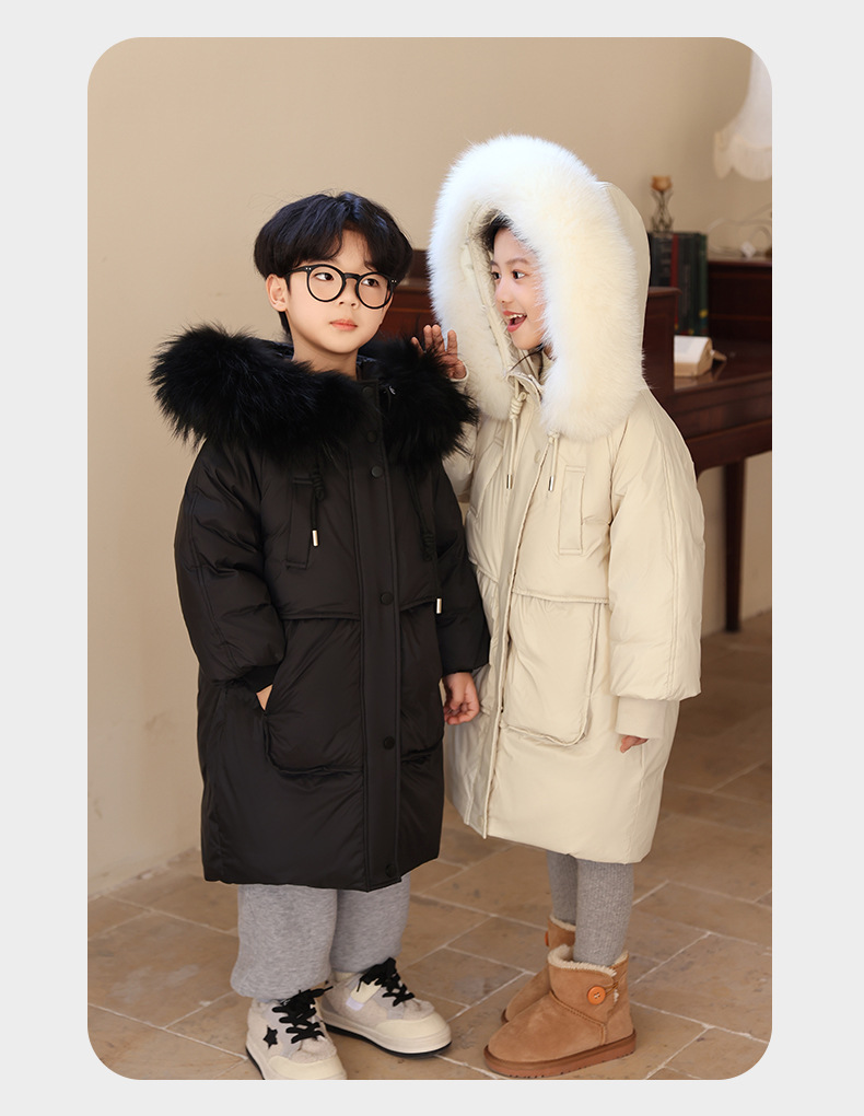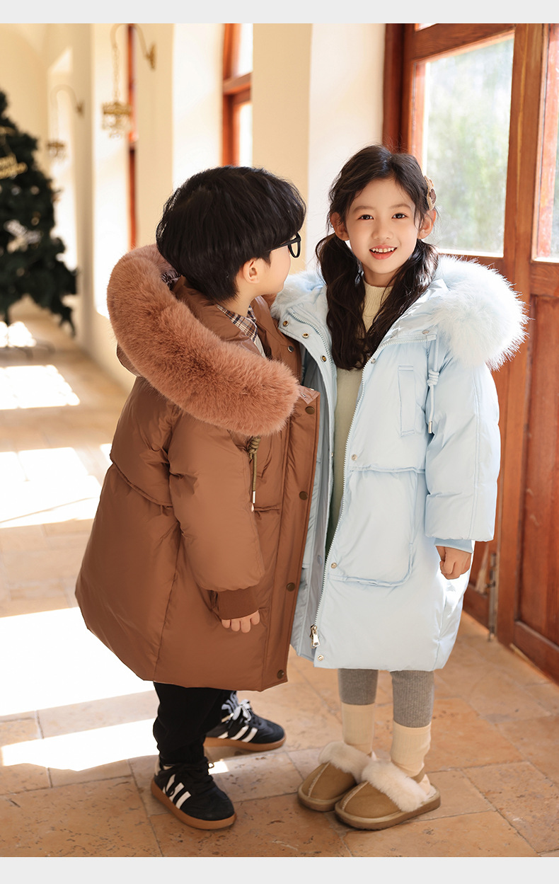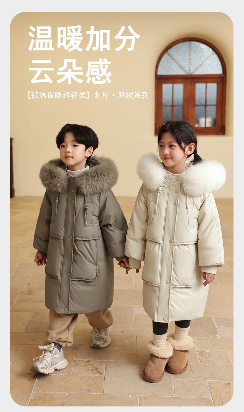 남아용 다운 재킷, 여아용 중간 길이 아동용 2025년 신형 중대형 아동용 겨울 여아용 아동용 두꺼운 재킷