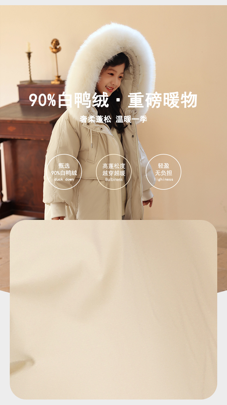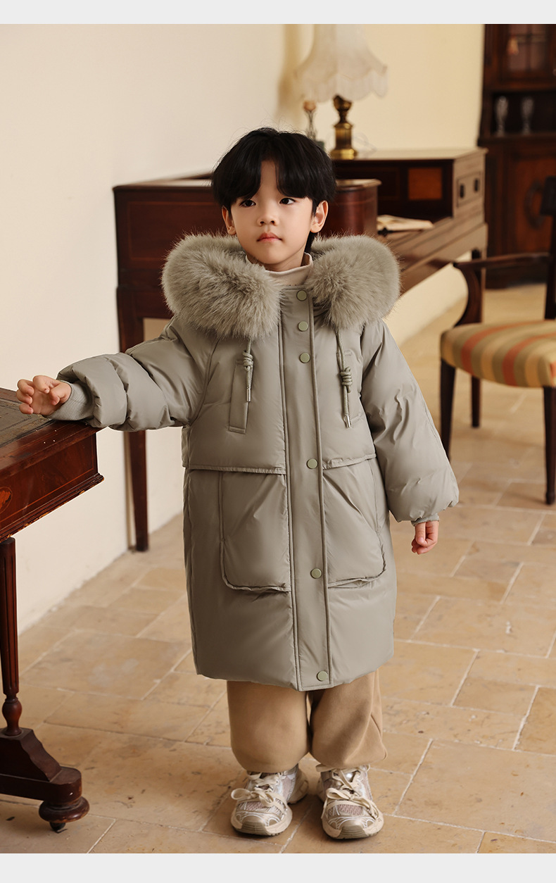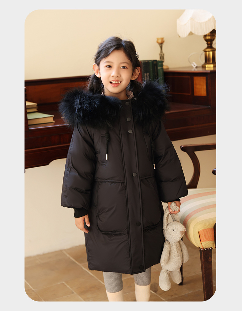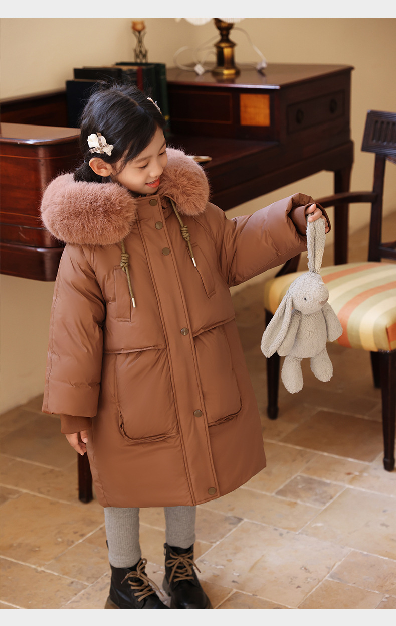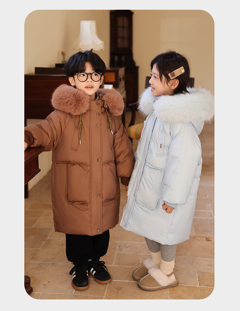 남아용 다운 재킷, 여아용 중간 길이 아동용 2025년 신형 중대형 아동용 겨울 여아용 아동용 두꺼운 재킷