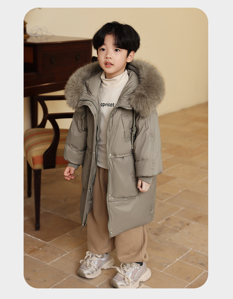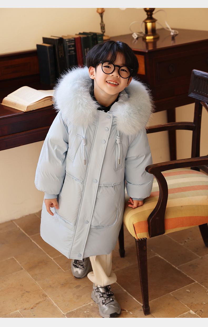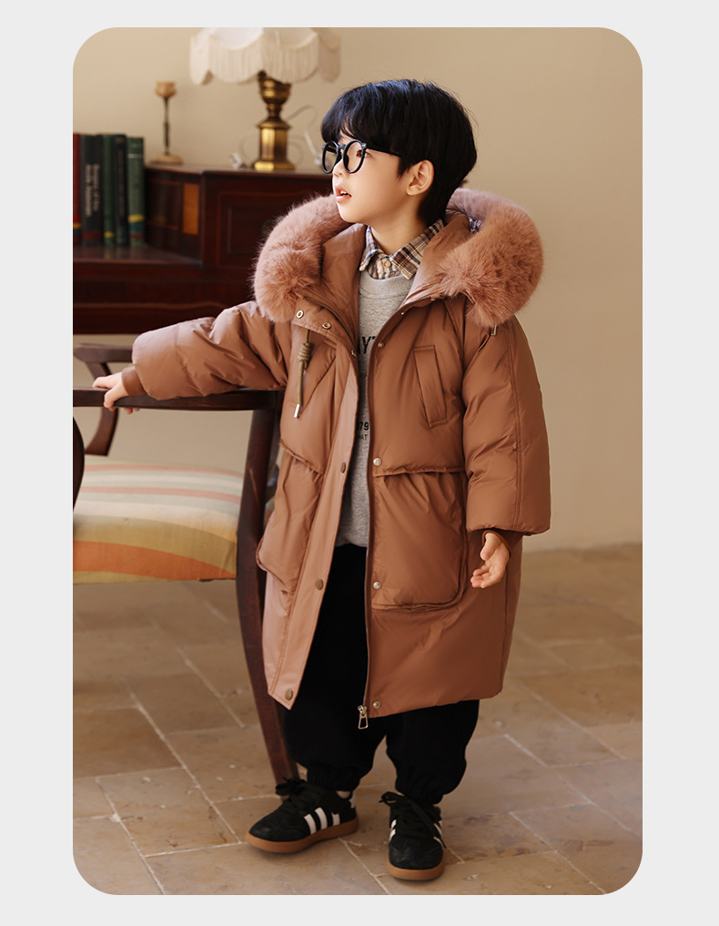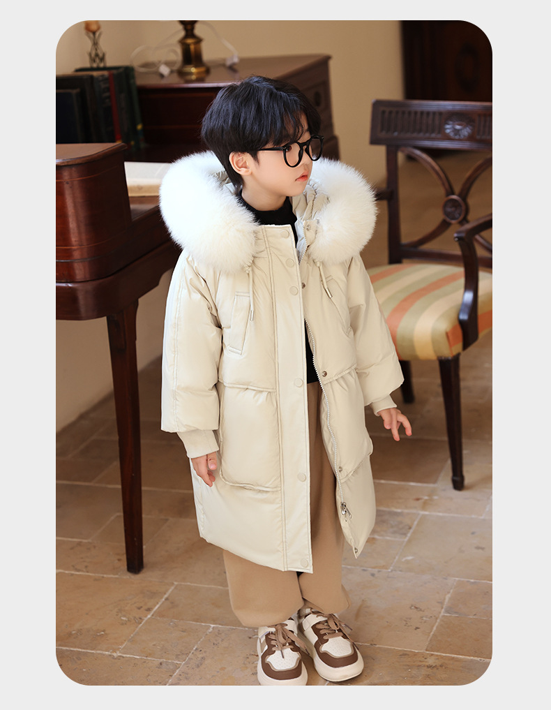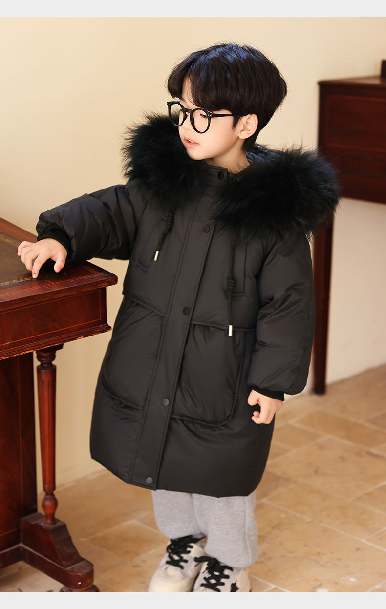 남아용 다운 재킷, 여아용 중간 길이 아동용 2025년 신형 중대형 아동용 겨울 여아용 아동용 두꺼운 재킷