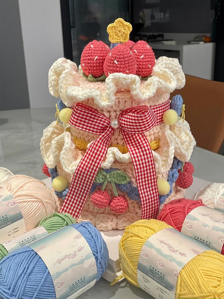 가장 친한 친구를 위한 손으로 만든 울 크로셰 초대형 베리 더블 케이크 의미 있는 생일 뜨개질 재료 패키지스토어 가기