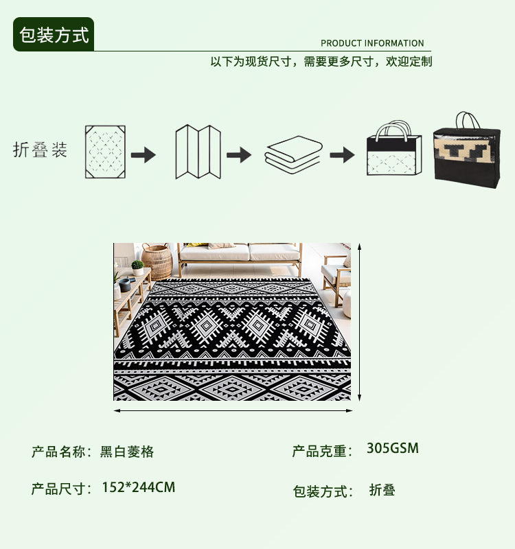 PP 튜브로 짜여진 방수 및 오염 방지 피크닉 매트, 정원 발코니용 휴대용 접이식 캠핑 매트, 사계절 사용 가능, 노화 방지스토어 가기