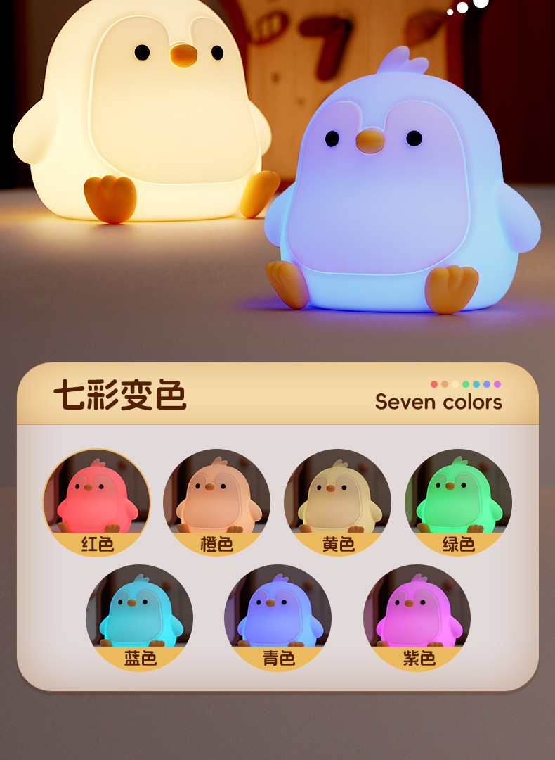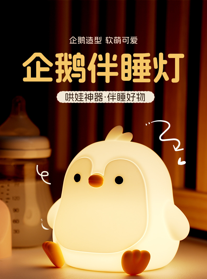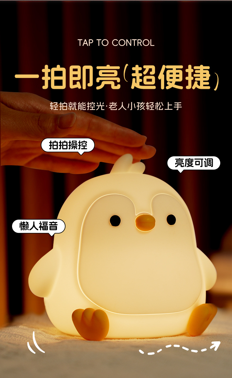 페깅도매 펭귄 무드등, 긴 배터리 수명, 스마트 센서 충전, 실내 장식용 실리콘 무드등스토어 가기