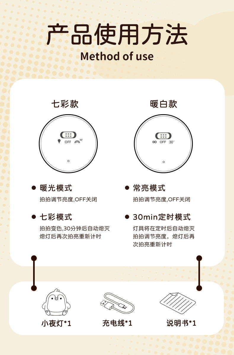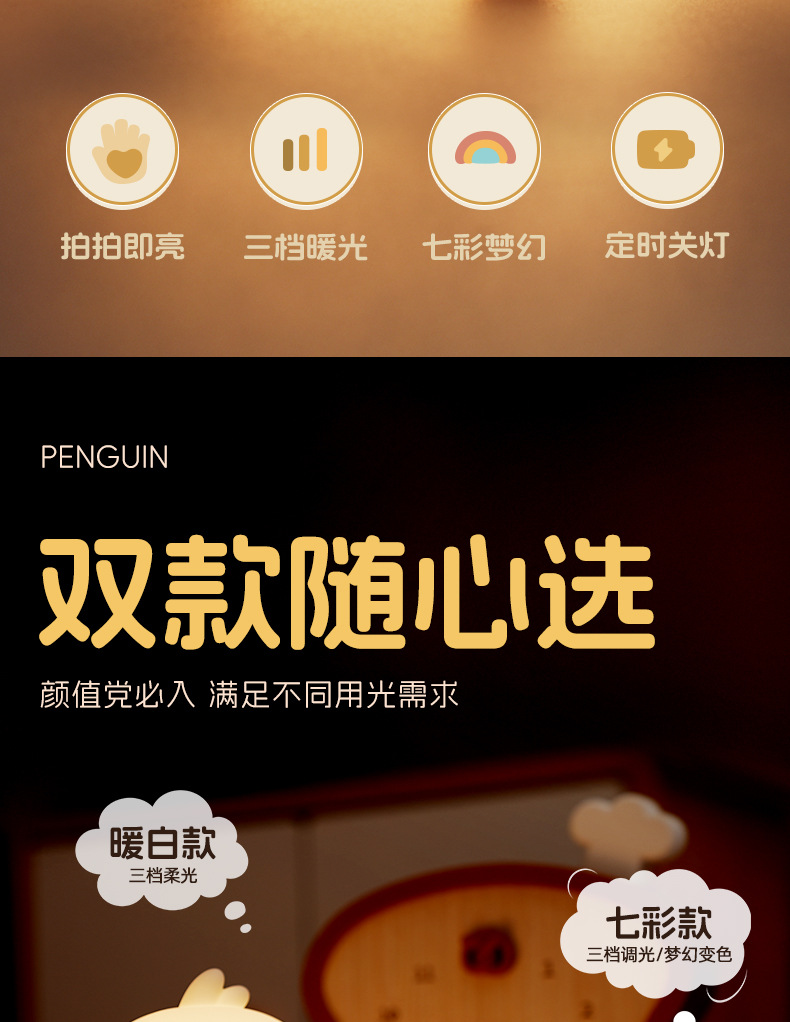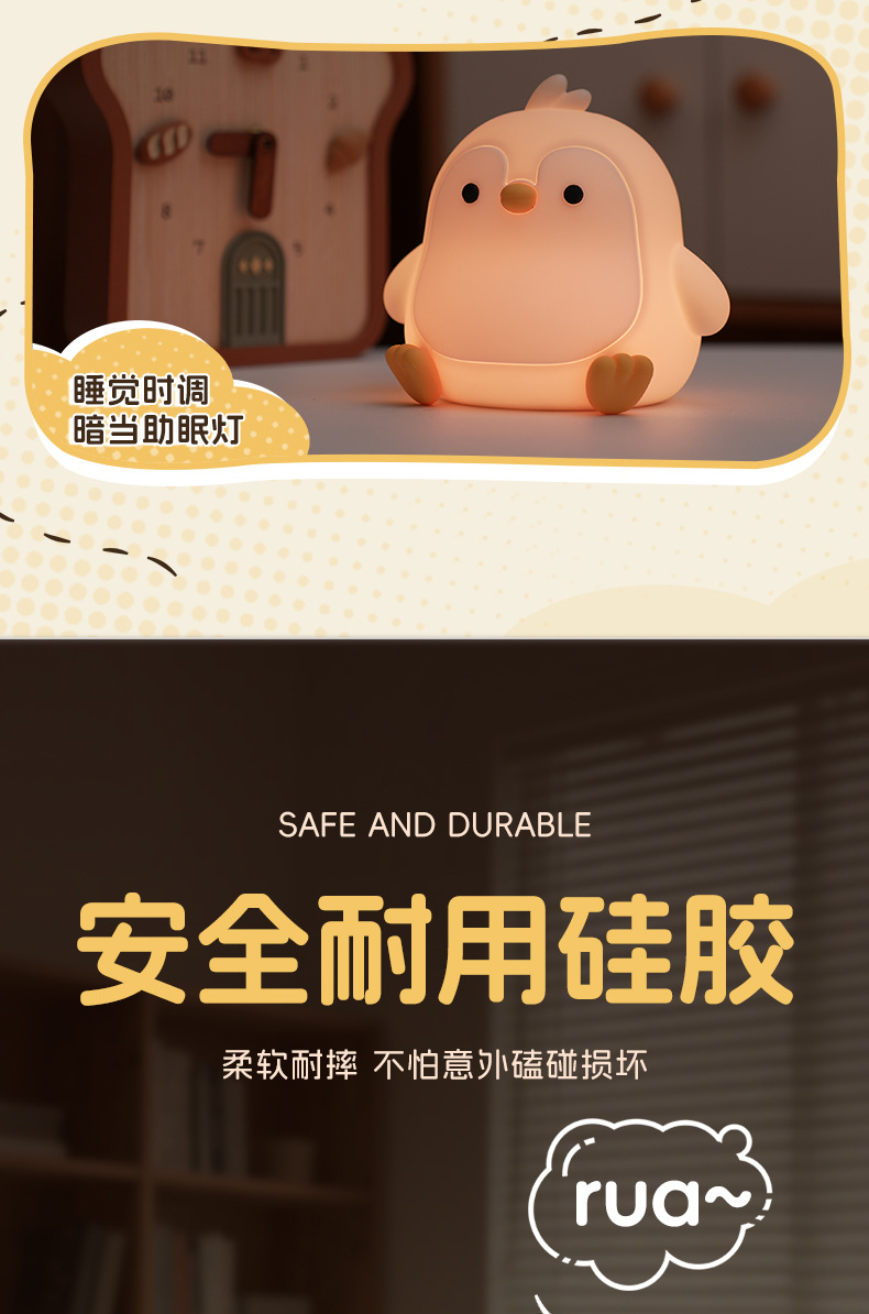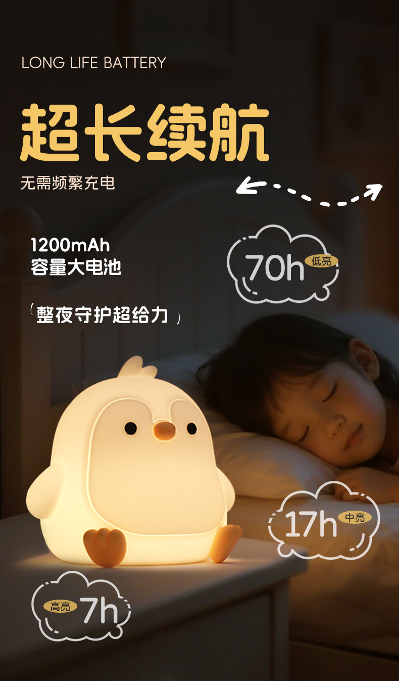 페깅도매 펭귄 무드등, 긴 배터리 수명, 스마트 센서 충전, 실내 장식용 실리콘 무드등스토어 가기