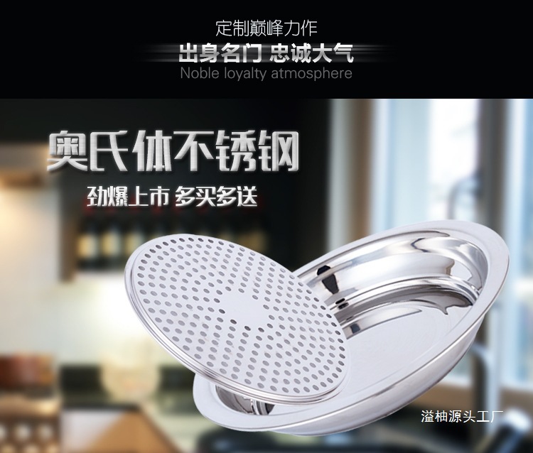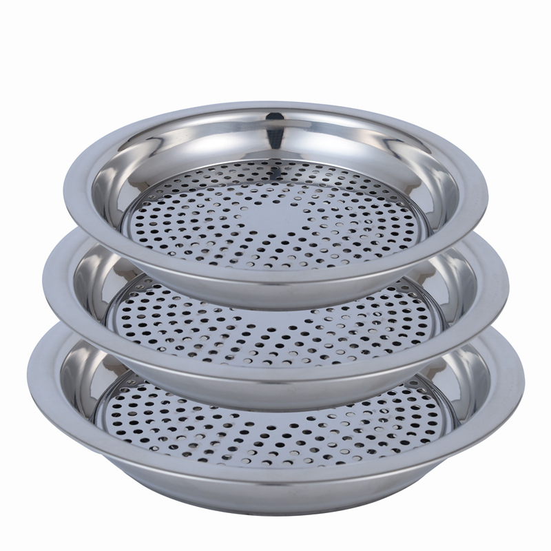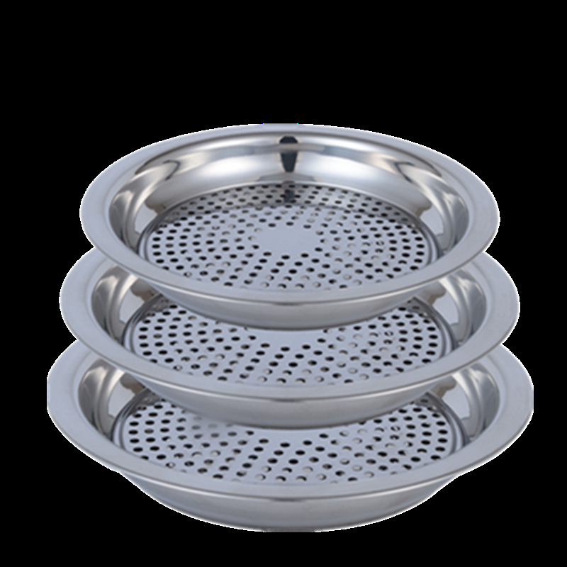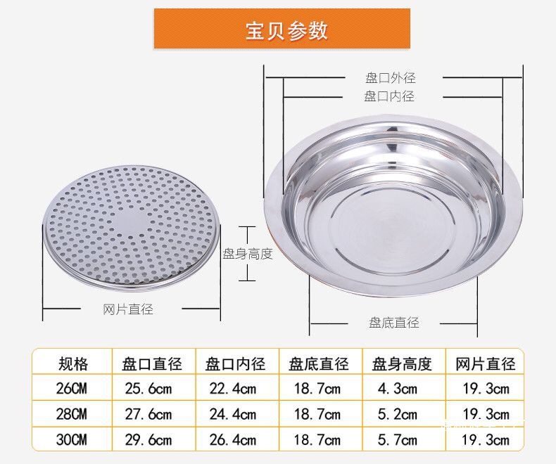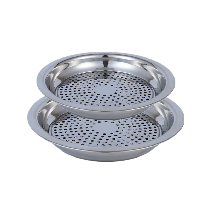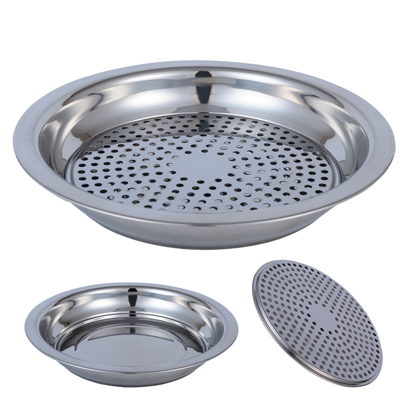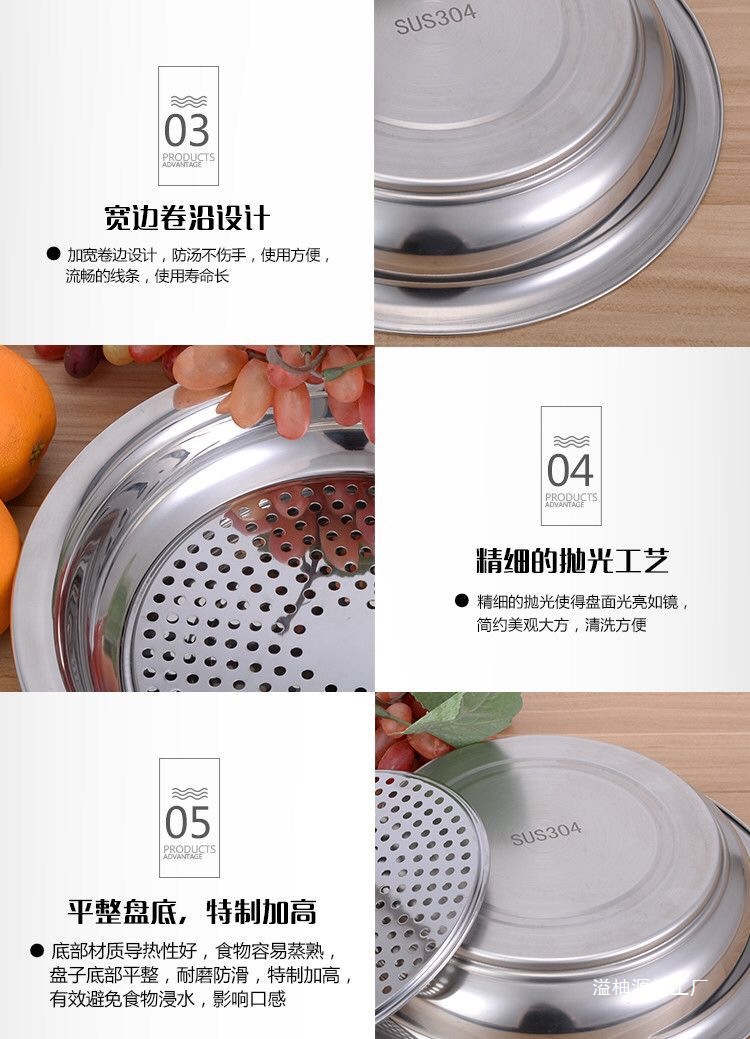 304 스테인레스 스틸 접시 두꺼운 만두 배수구 상업용 찜 접시 만두 트레이 가정용 대형 원형 접시 오렌지
