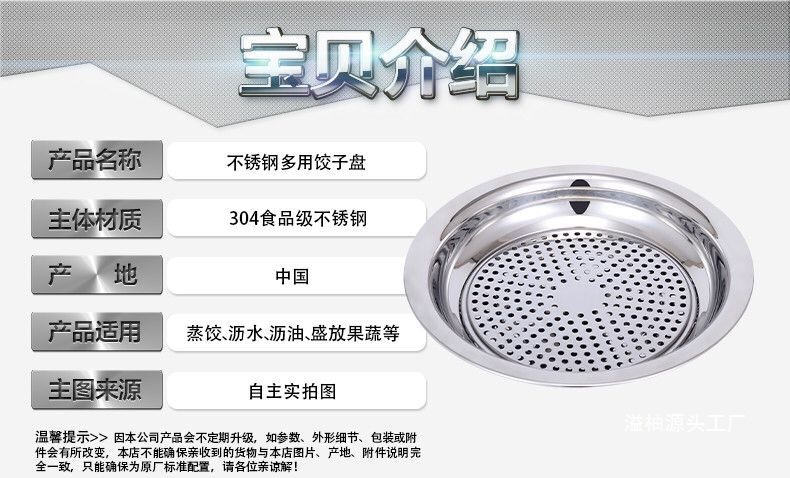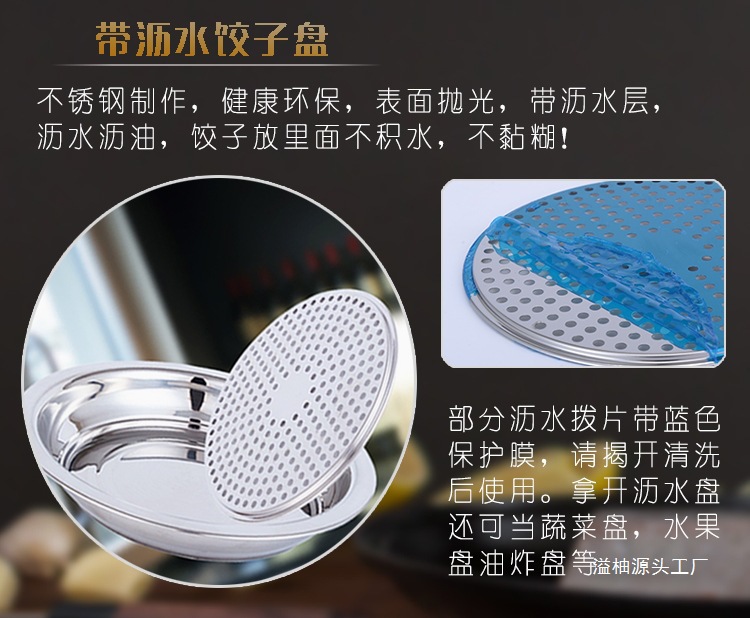304 스테인레스 스틸 접시 두꺼운 만두 배수구 상업용 찜 접시 만두 트레이 가정용 대형 원형 접시 오렌지스토어 가기