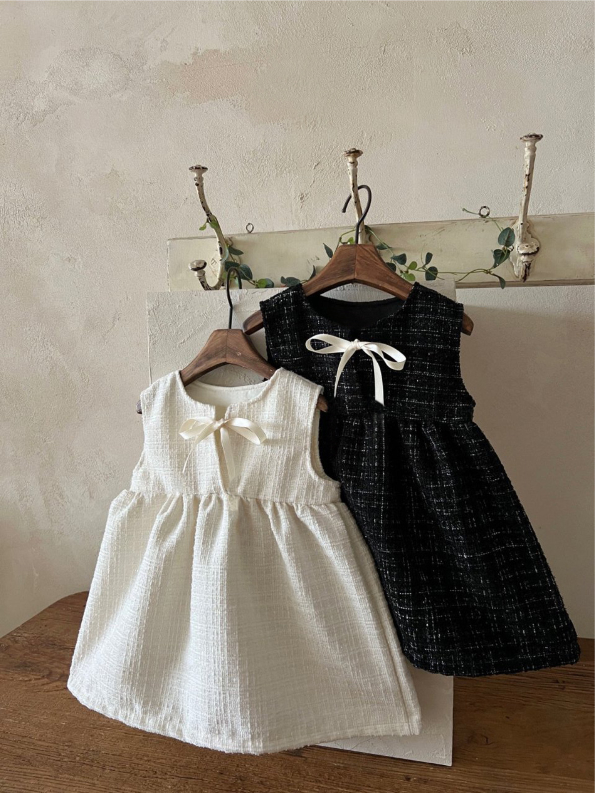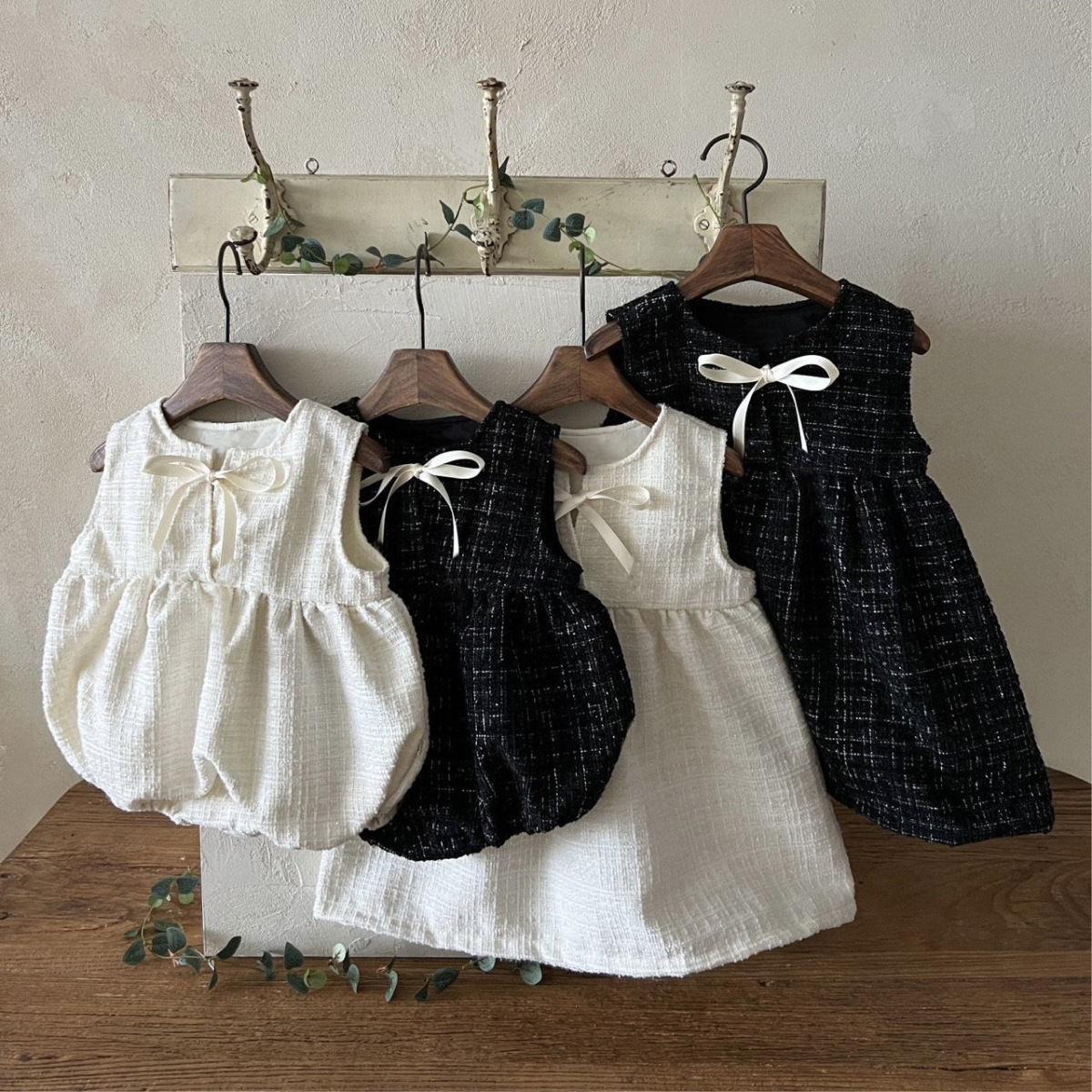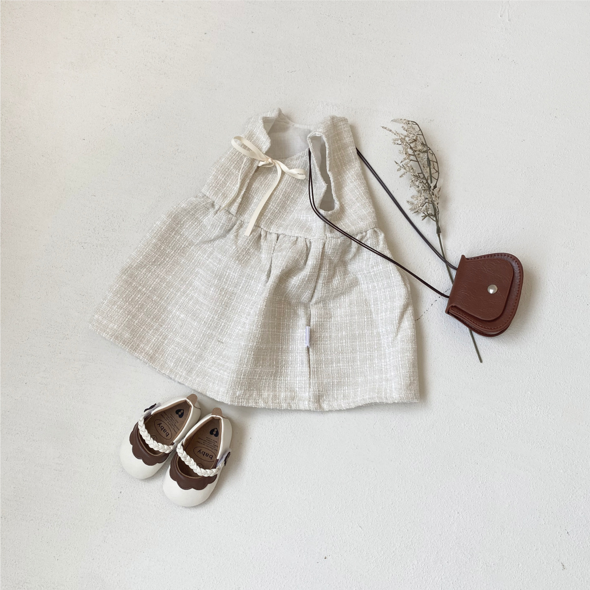 한국 아동복 2025 봄 신작 여아 작은 향기 스타일 민소매 드레스 리본 아기 기질 공주 드레스스토어 가기