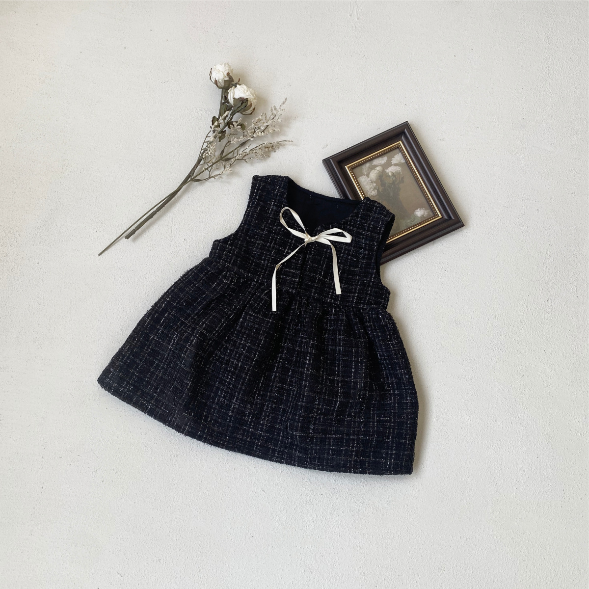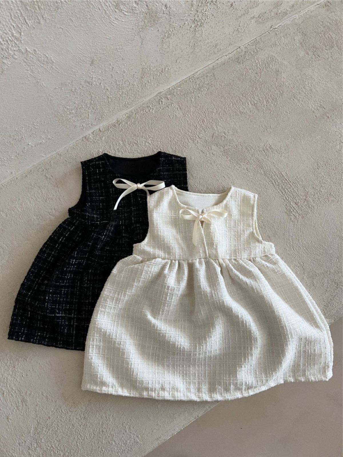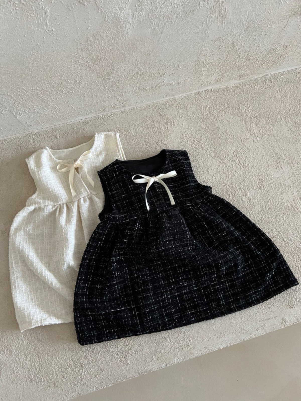 한국 아동복 2025 봄 신작 여아 작은 향기 스타일 민소매 드레스 리본 아기 기질 공주 드레스