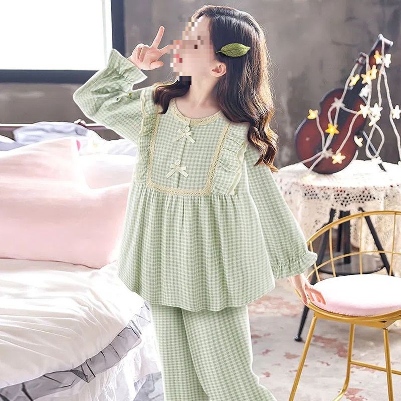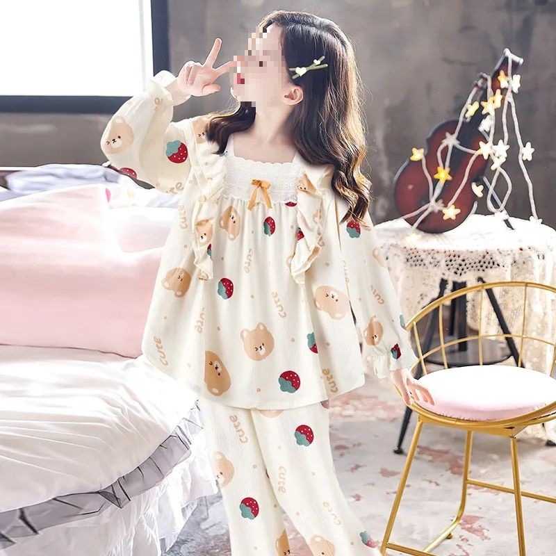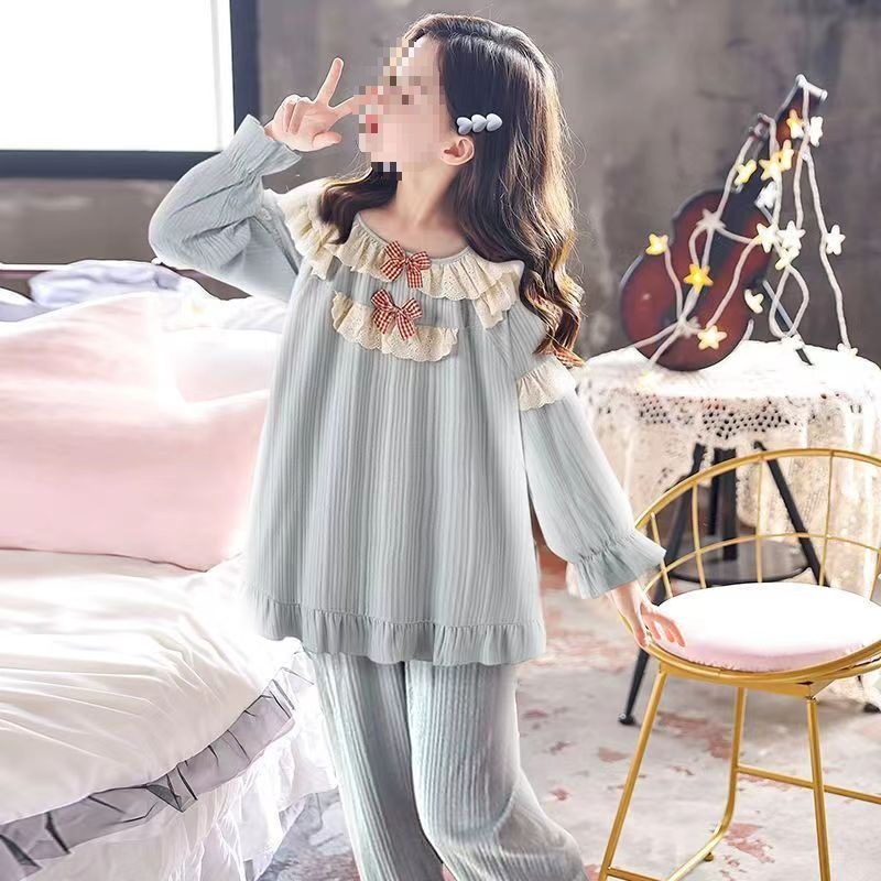 여자 잠옷 봄과 가을 빗질면 긴팔 여름 공주 중대형 어린이 아기 소녀 에어컨 어린이 가정 의류 세트스토어 가기