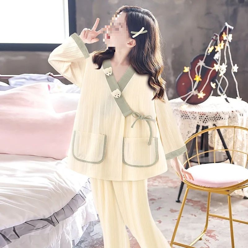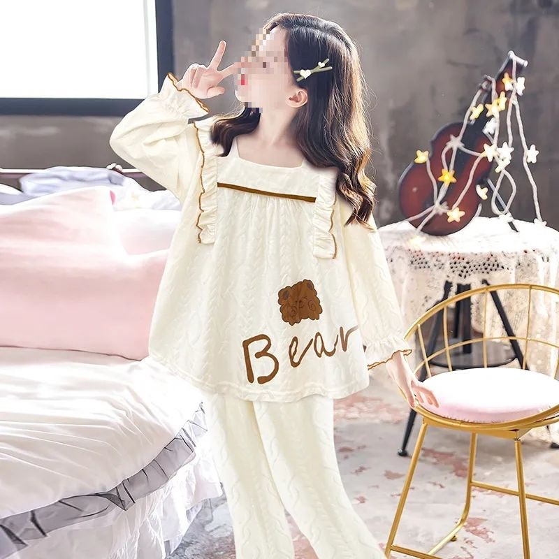 여자 잠옷 봄과 가을 빗질면 긴팔 여름 공주 중대형 어린이 아기 소녀 에어컨 어린이 가정 의류 세트