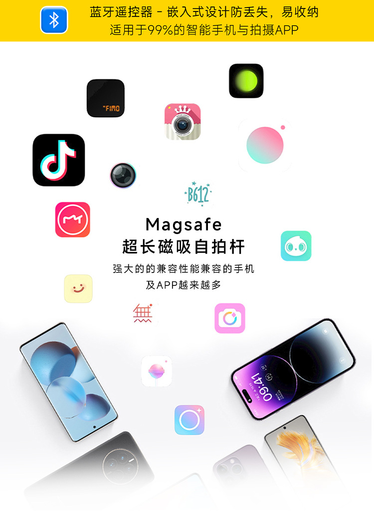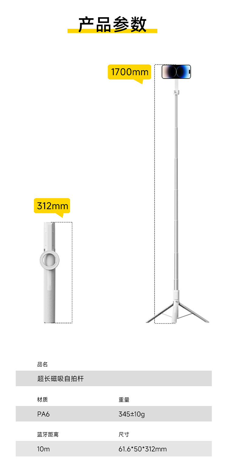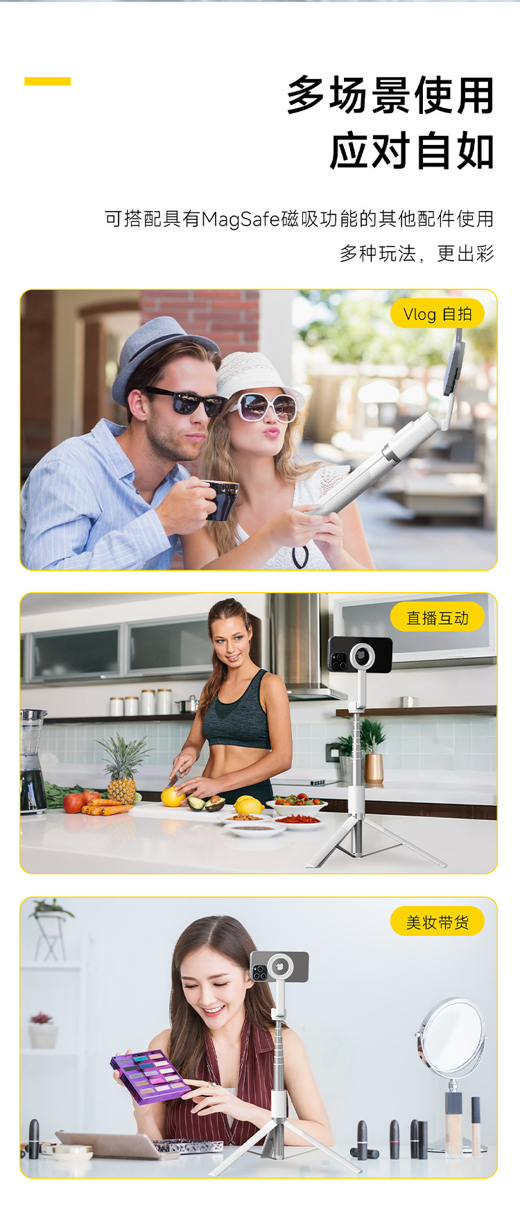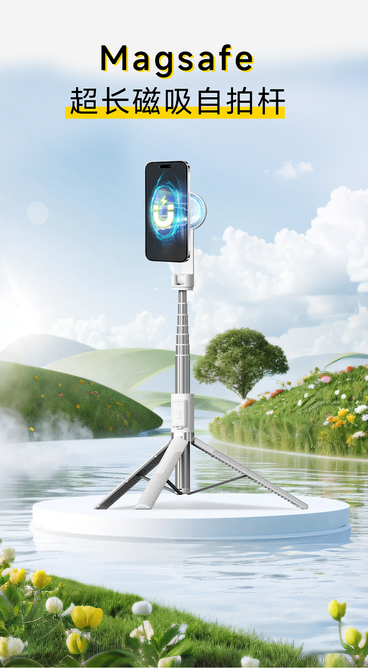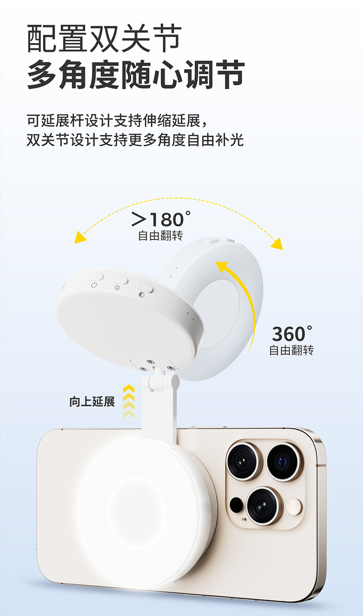 • T6 자기 셀카봉 화이트 +360 ° 자기 회전 조명
