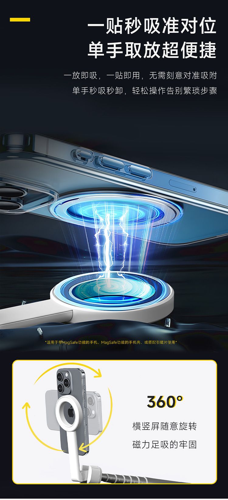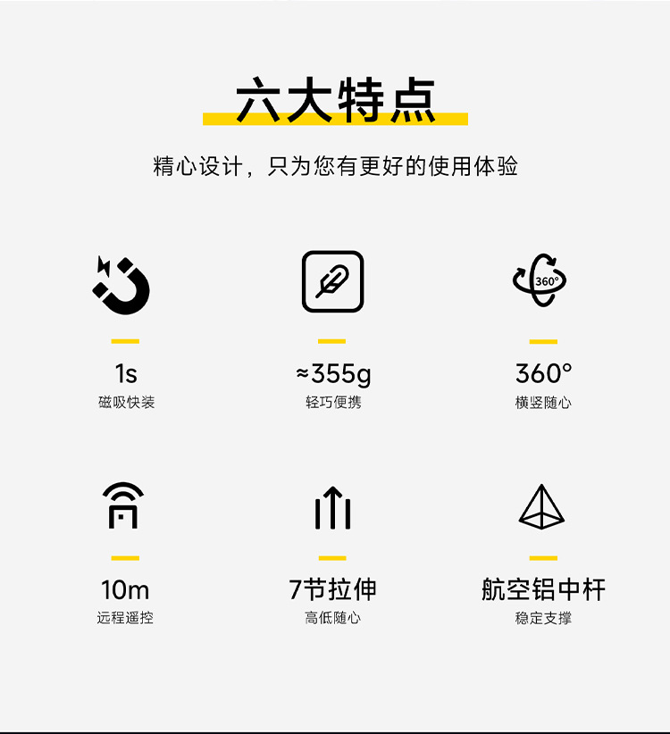 • T6 자기 셀카봉 블랙 +360 ° 자기 회전 조명