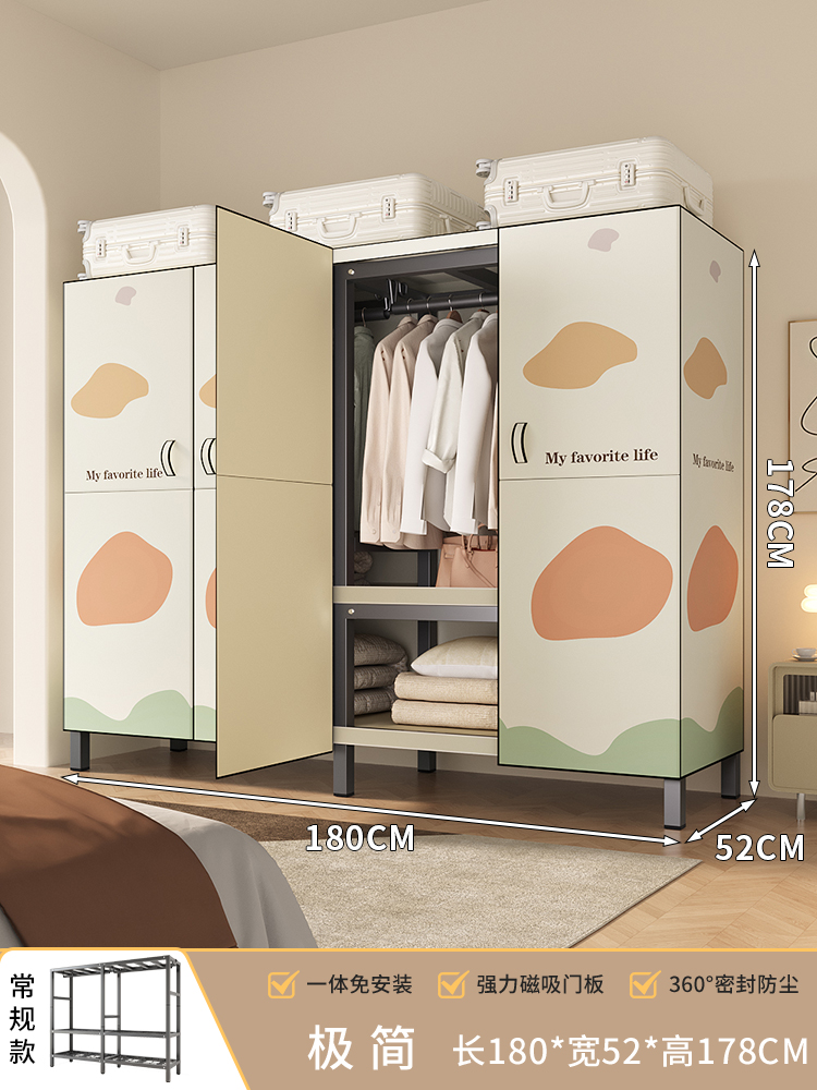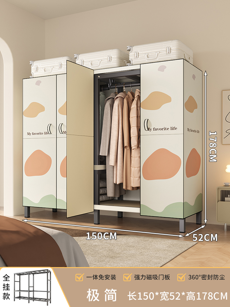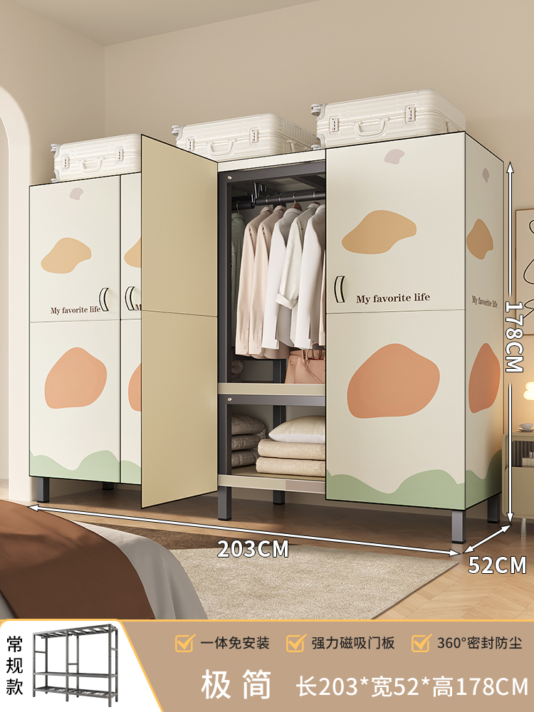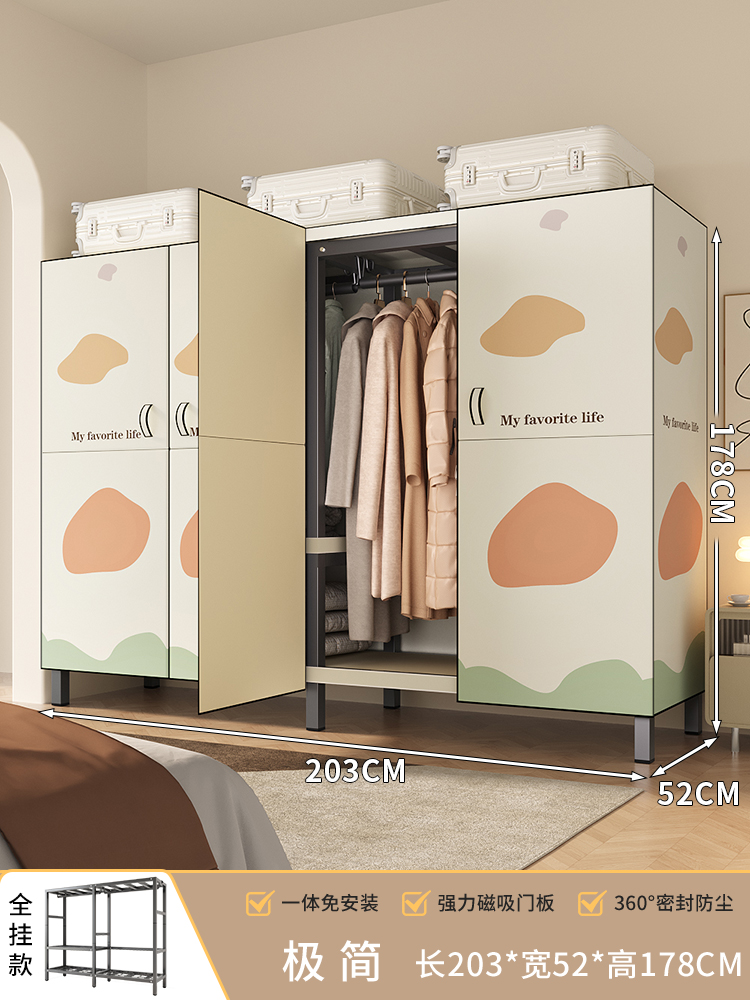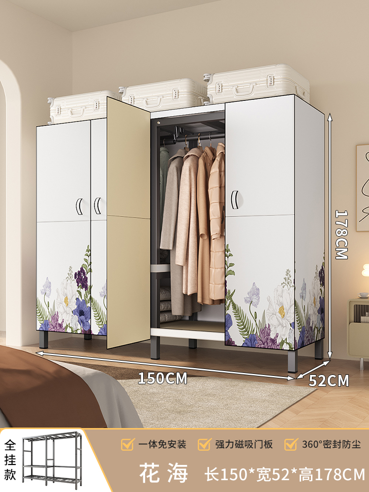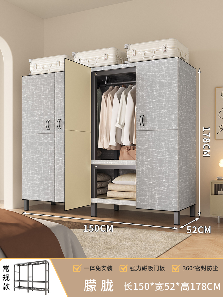 천 옷장 침실 홈 오픈 도어 간단한 설치가 필요없는 옷장 접이식 옷장 강력하고 내구성이 뛰어난 전체 강철 프레임
