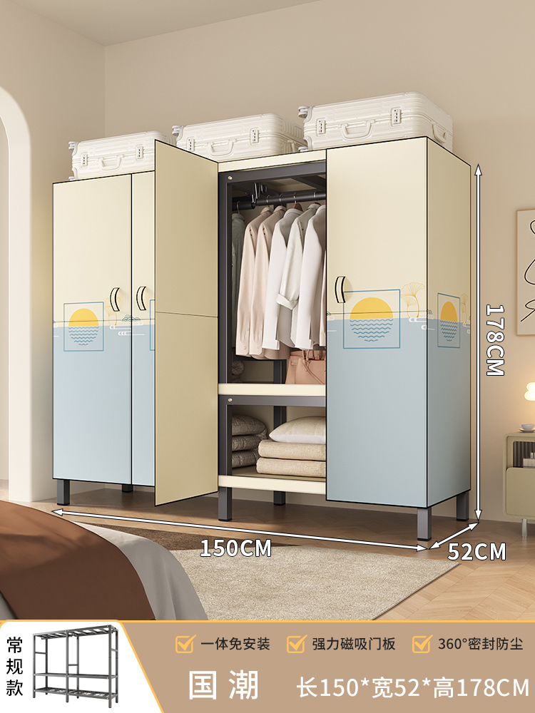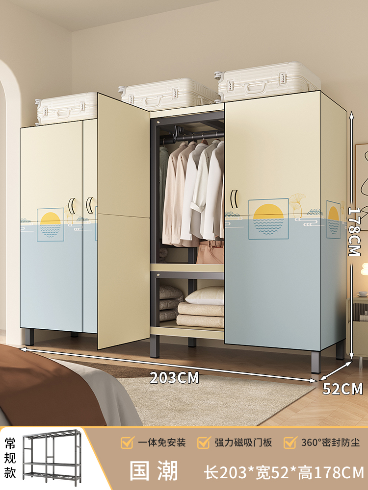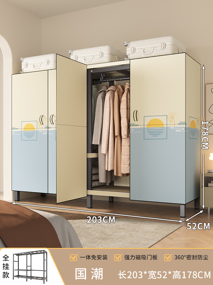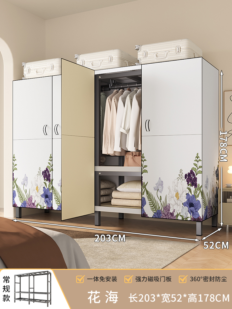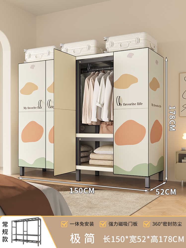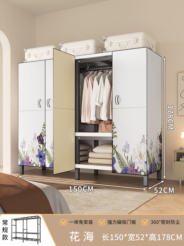 천 옷장 침실 홈 오픈 도어 간단한 설치가 필요없는 옷장 접이식 옷장 강력하고 내구성이 뛰어난 전체 강철 프레임