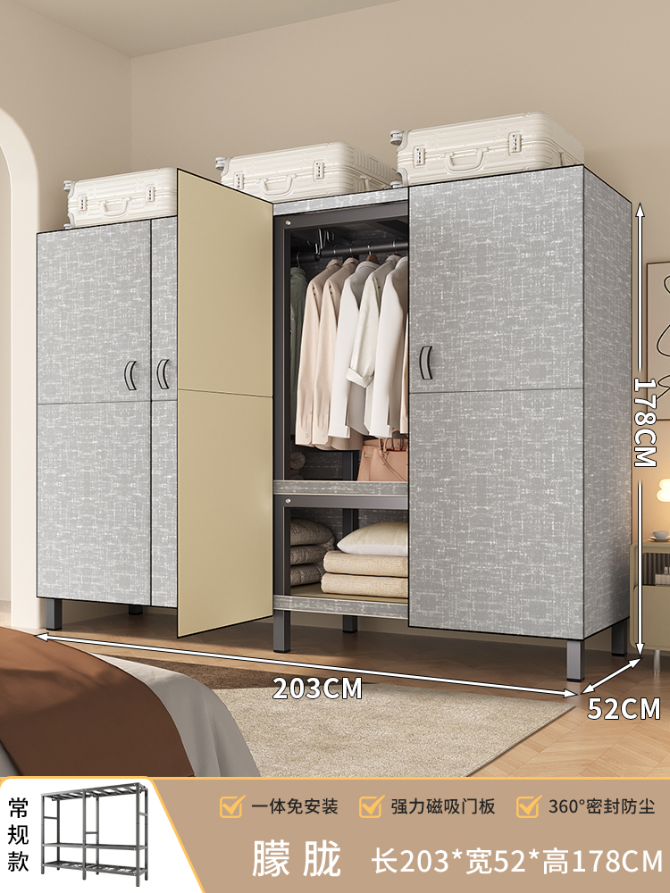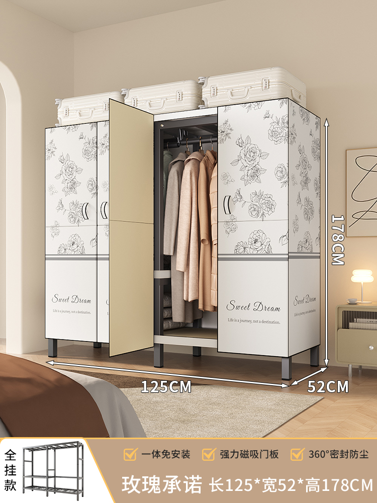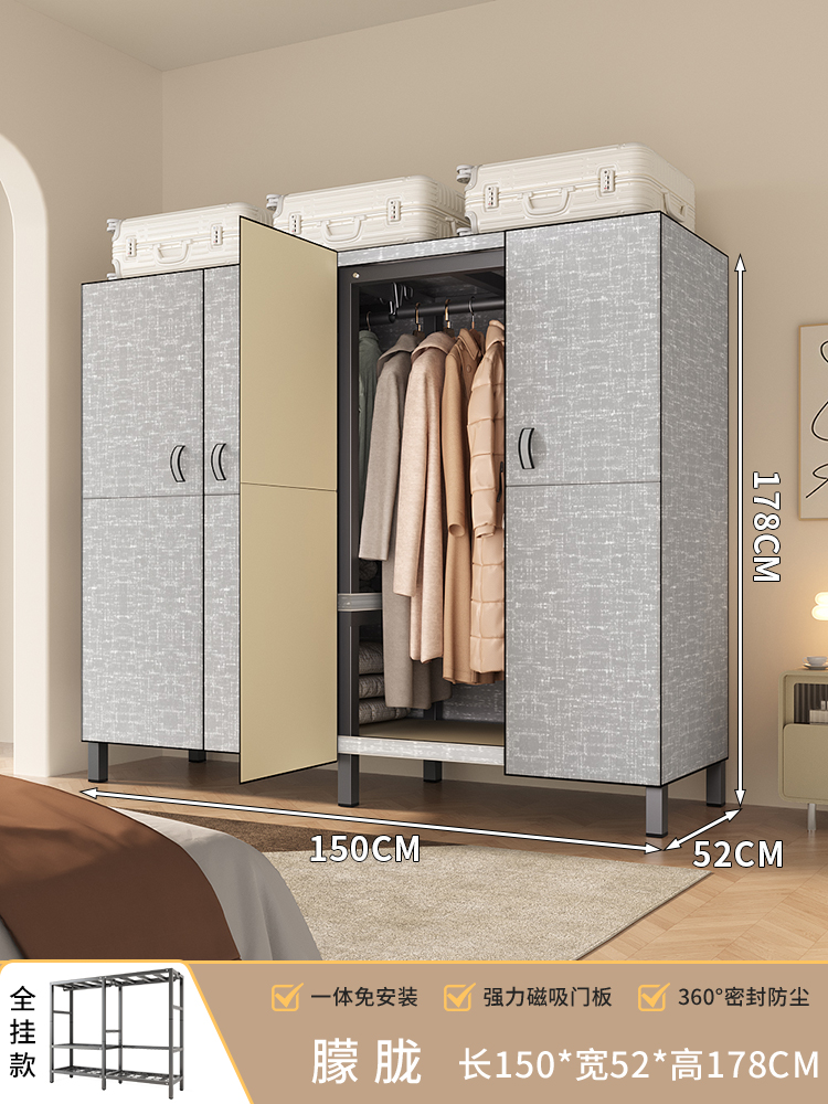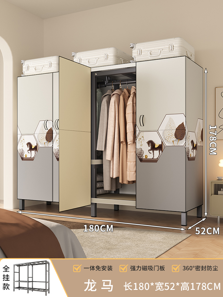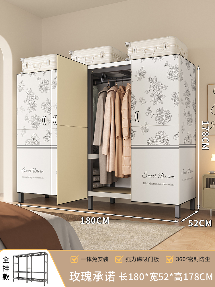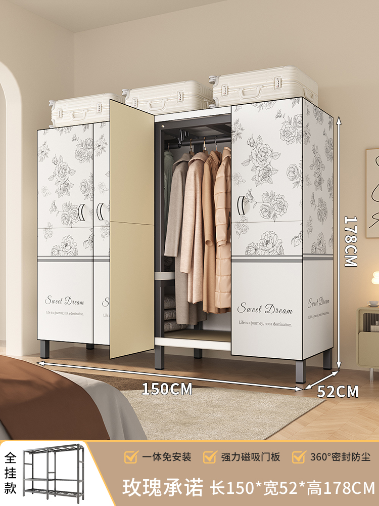 천 옷장 침실 홈 오픈 도어 간단한 설치가 필요없는 옷장 접이식 옷장 강력하고 내구성이 뛰어난 전체 강철 프레임스토어 가기