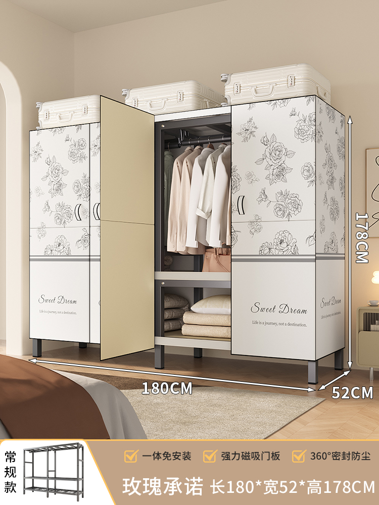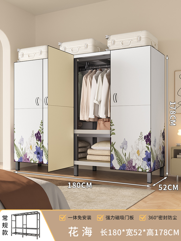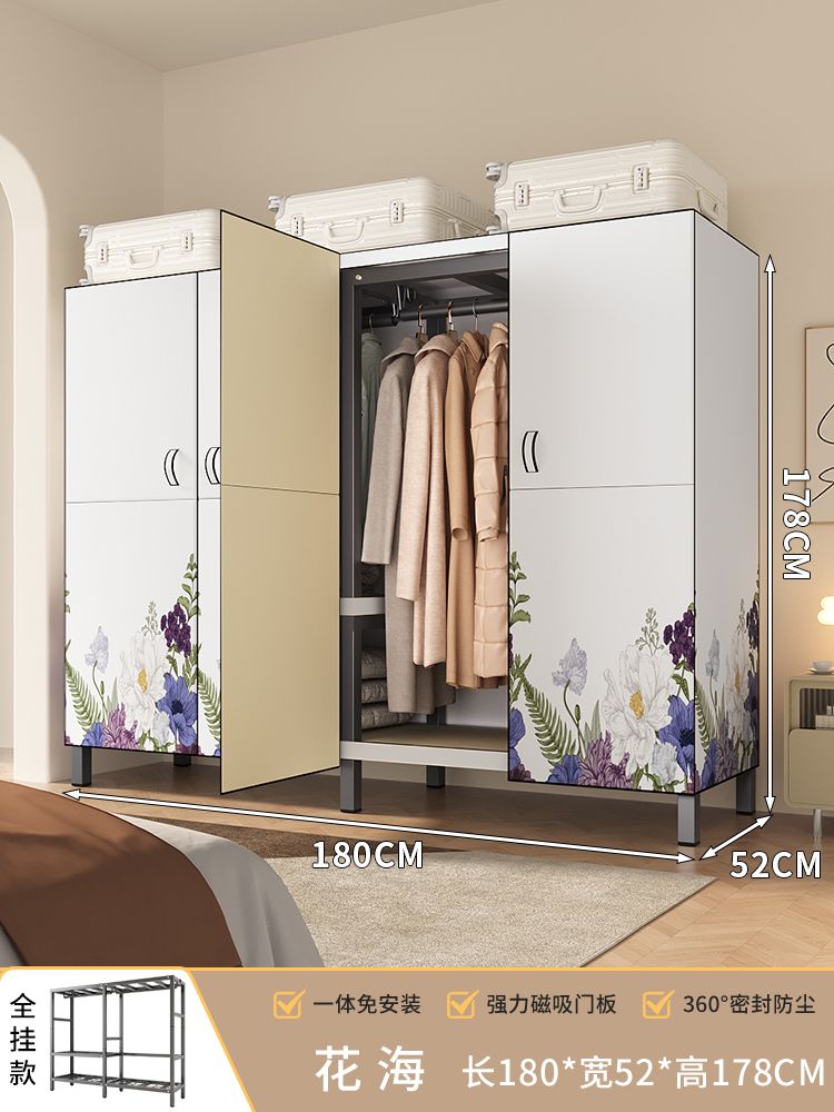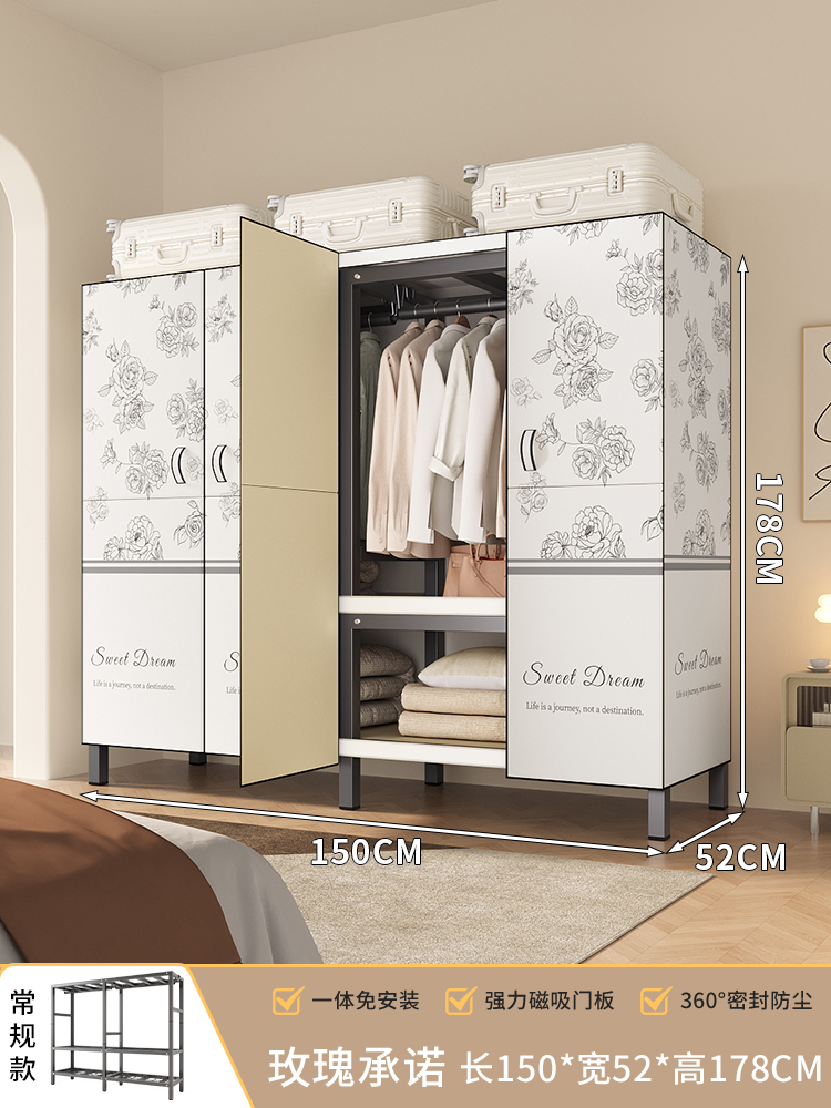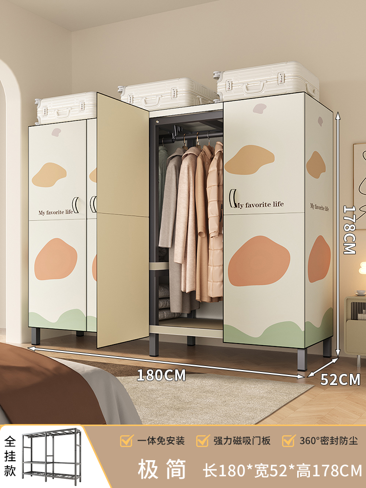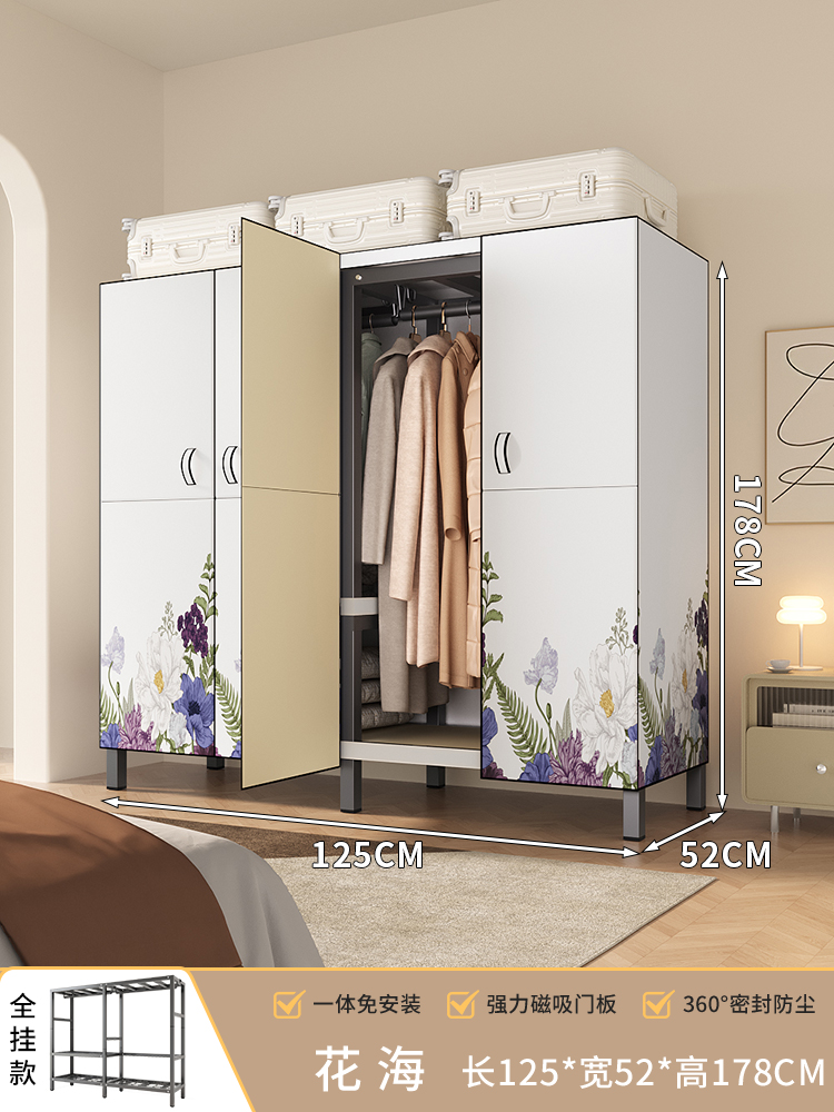 천 옷장 침실 홈 오픈 도어 간단한 설치가 필요없는 옷장 접이식 옷장 강력하고 내구성이 뛰어난 전체 강철 프레임스토어 가기