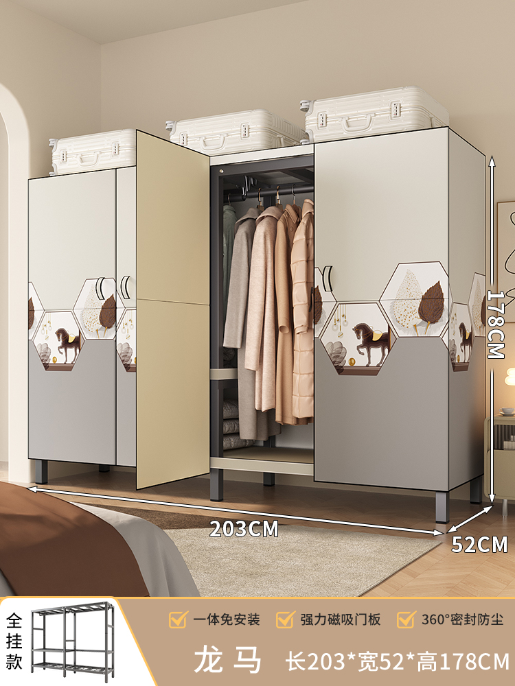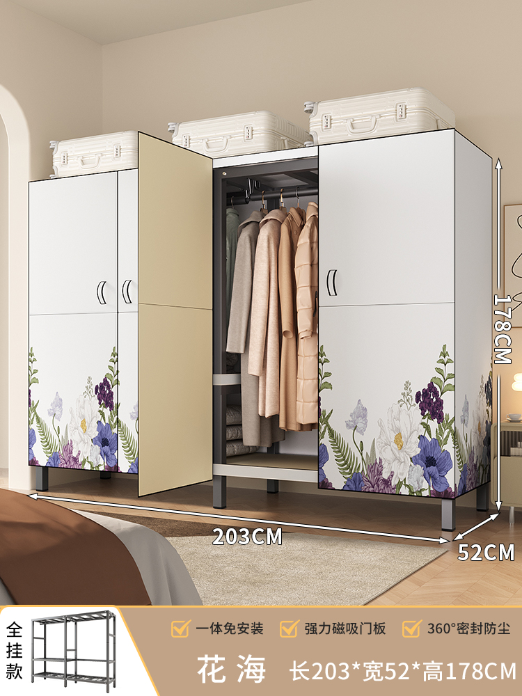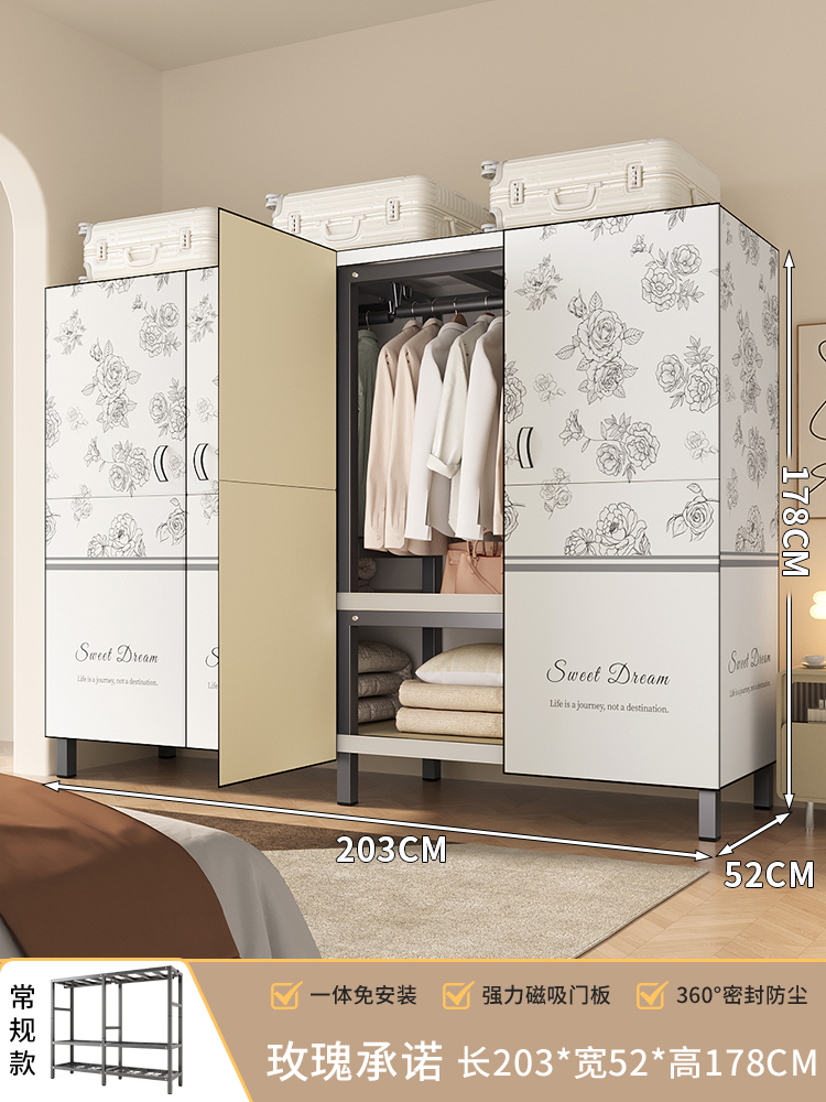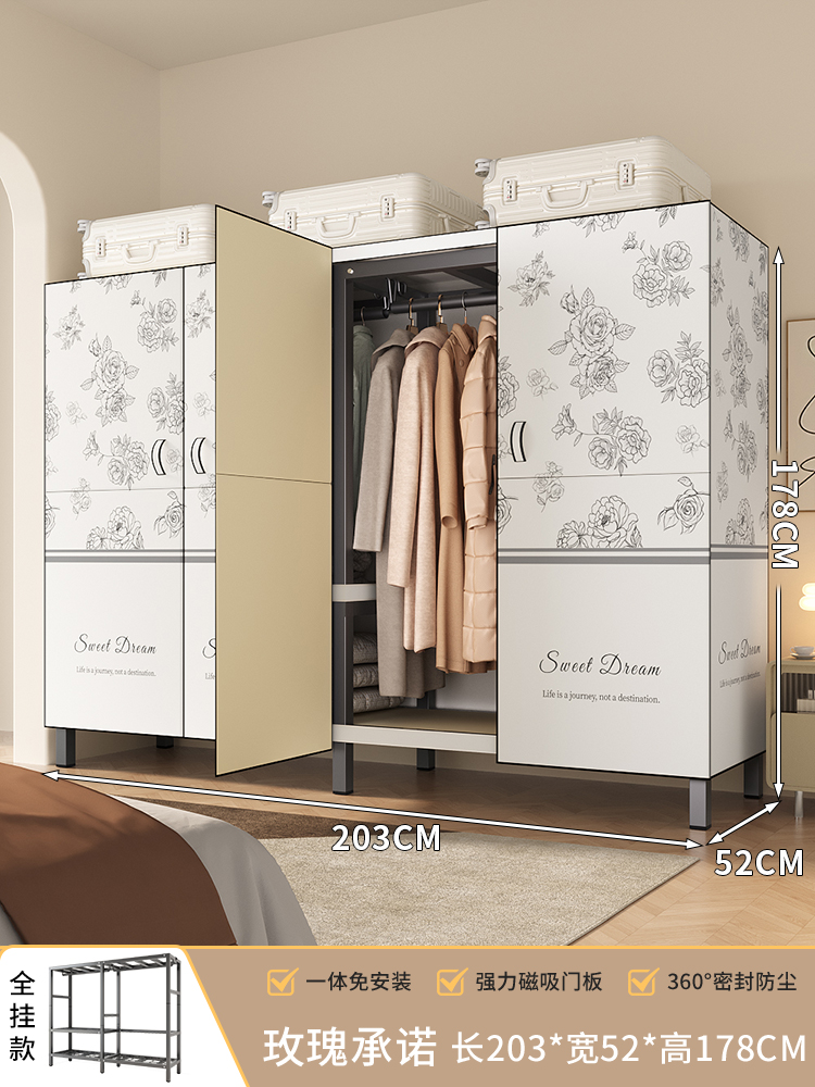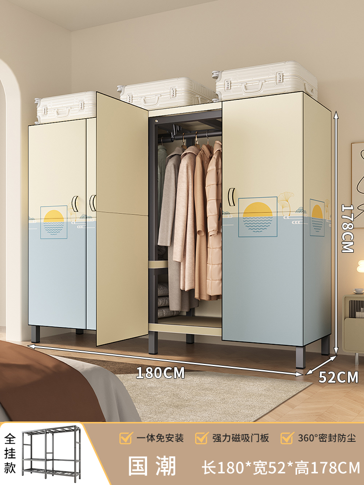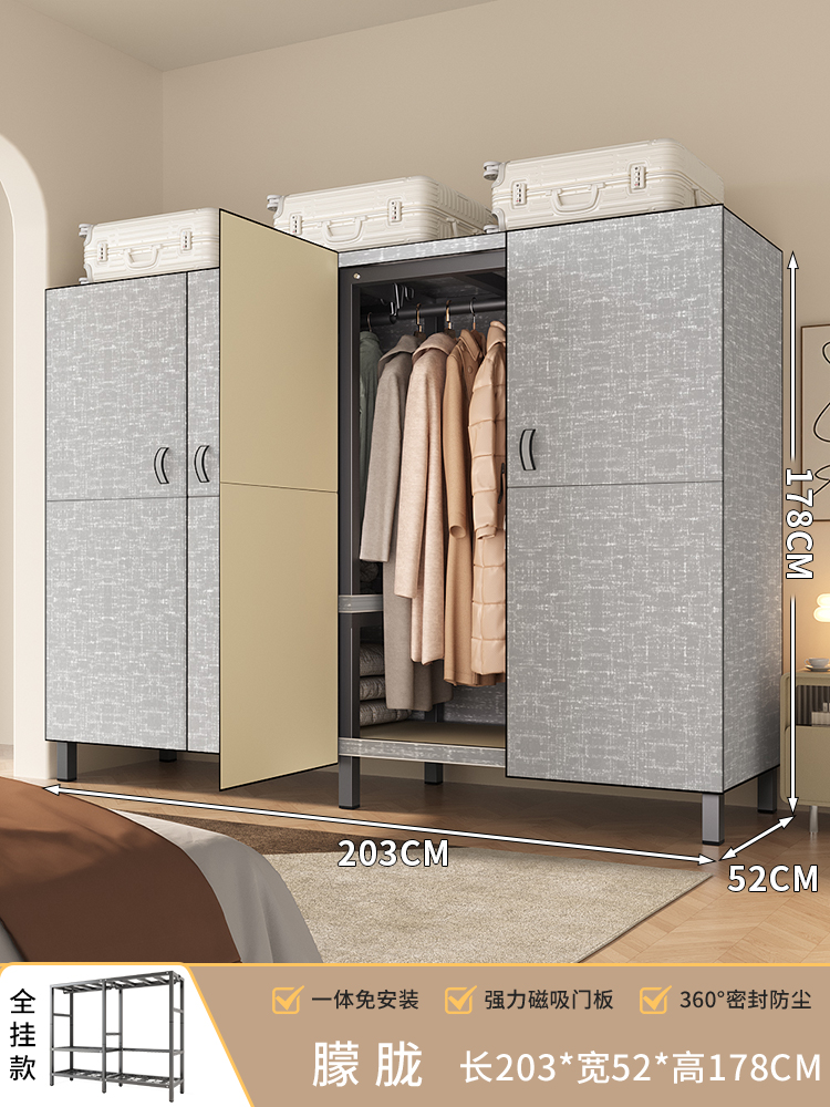 천 옷장 침실 홈 오픈 도어 간단한 설치가 필요없는 옷장 접이식 옷장 강력하고 내구성이 뛰어난 전체 강철 프레임스토어 가기
