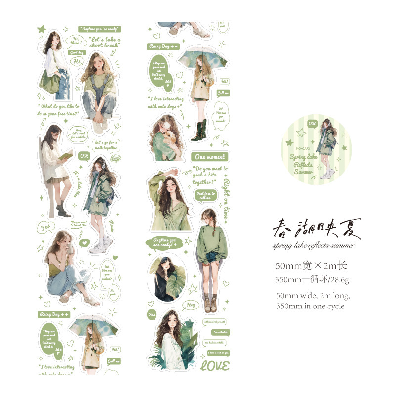 모모 해피 라이브 시리즈 PET 테이프 수채화 캐릭터 테마 핸드북 장식 재료 사이클 스티커 6종스토어 가기