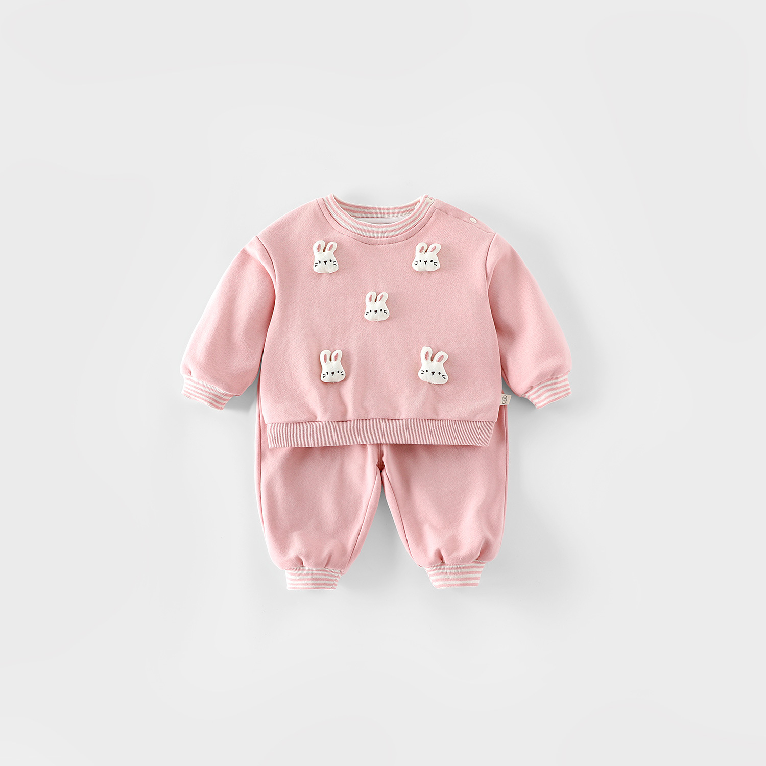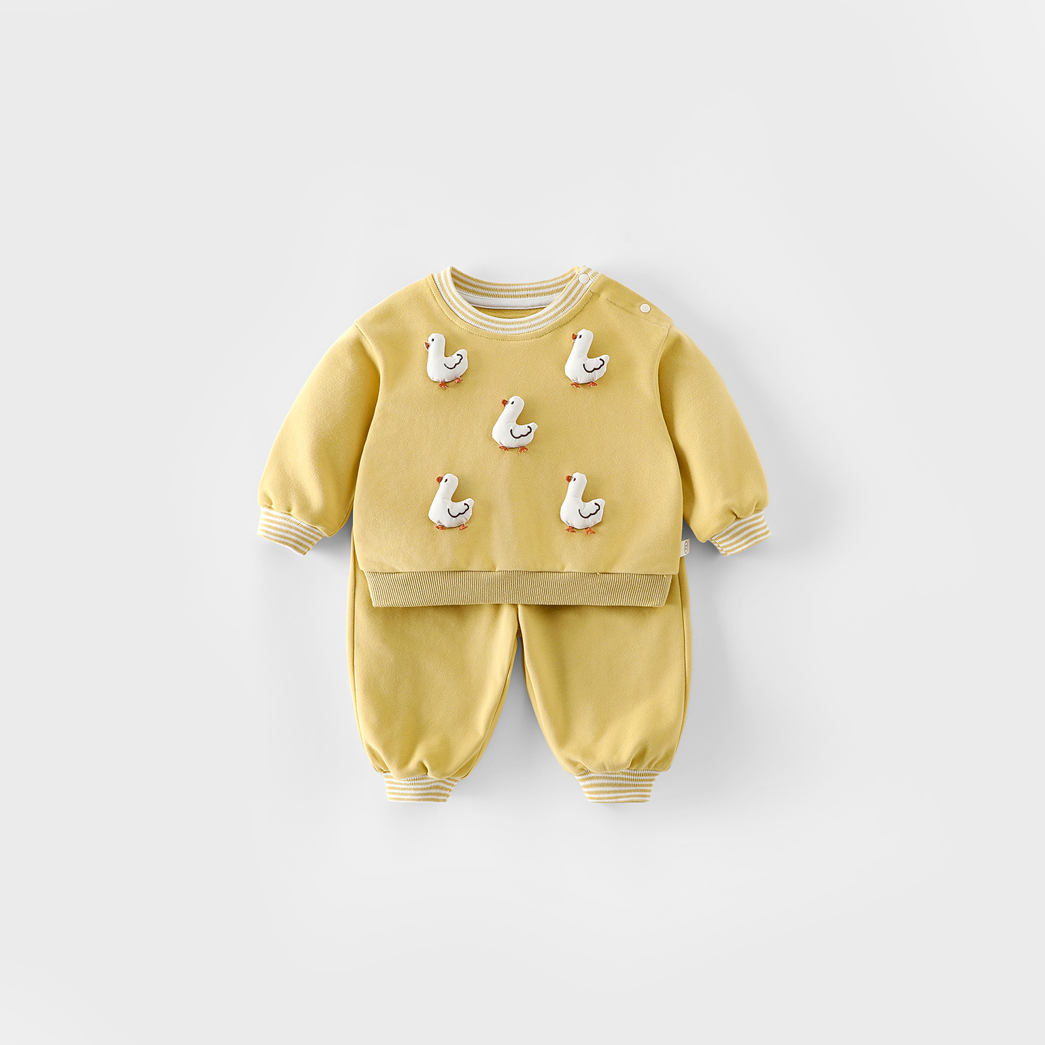 어린이 인형 세트 2025 새로운 가을 소녀 유행 토끼 운동복 소년 오리 운동복 투피스 세트 유행