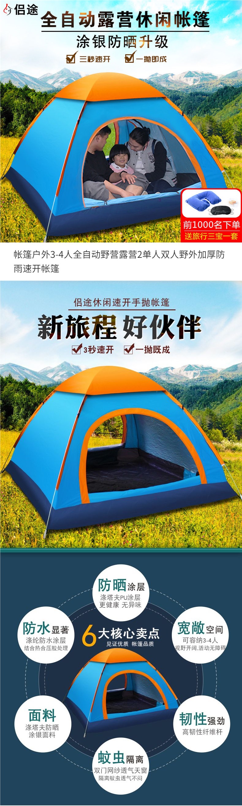 텐트 야외 3-4인용 완전 자동 캠핑 캠핑 2인용 더블 야외 두꺼운 방수 빠른 개방스토어 가기