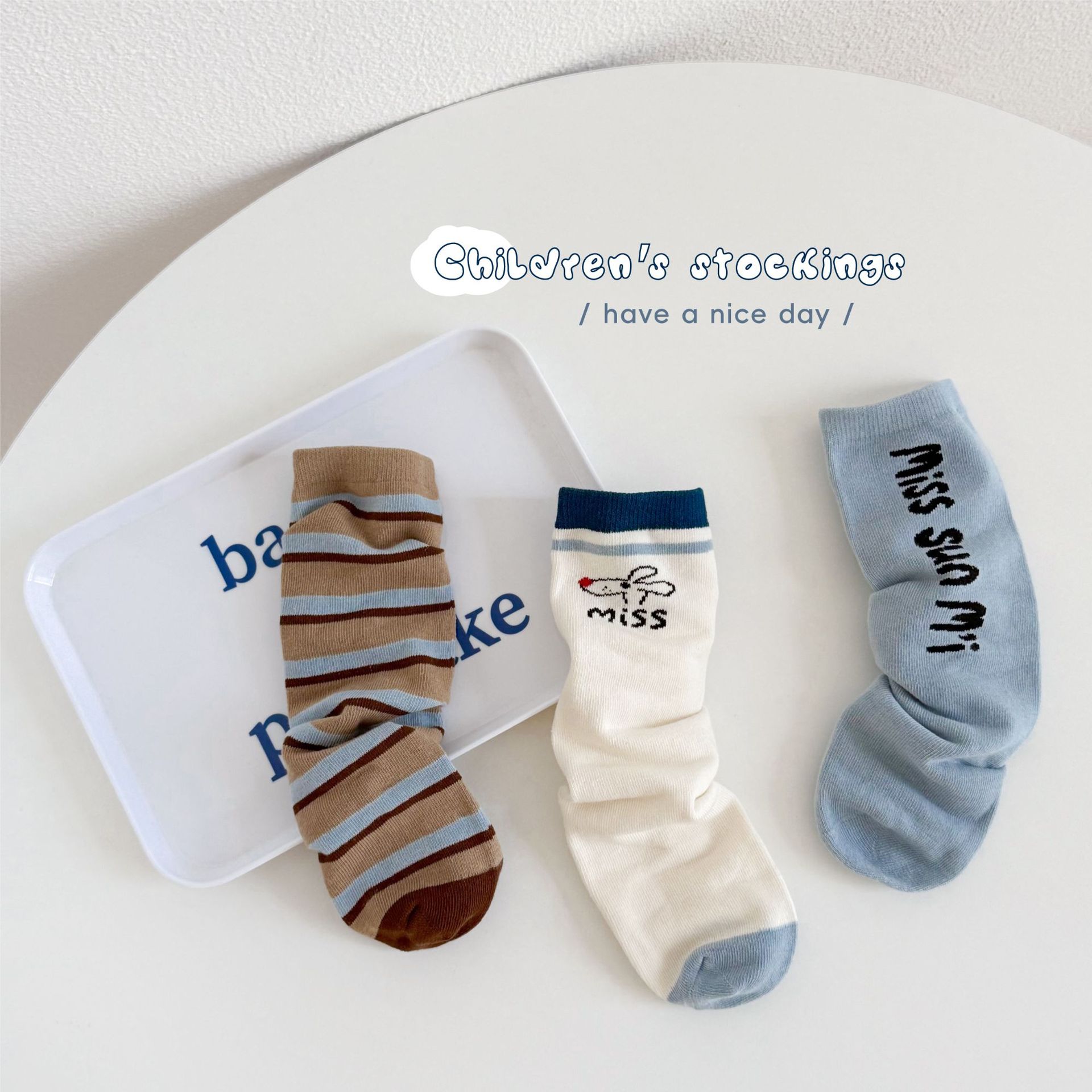 Sun Miss 어린이 양말 남성과 여성을위한 편지 트렌디 한 긴면 양말 가을, 겨울 한국어 버전 신선한 만화 줄무늬 종아리 양말