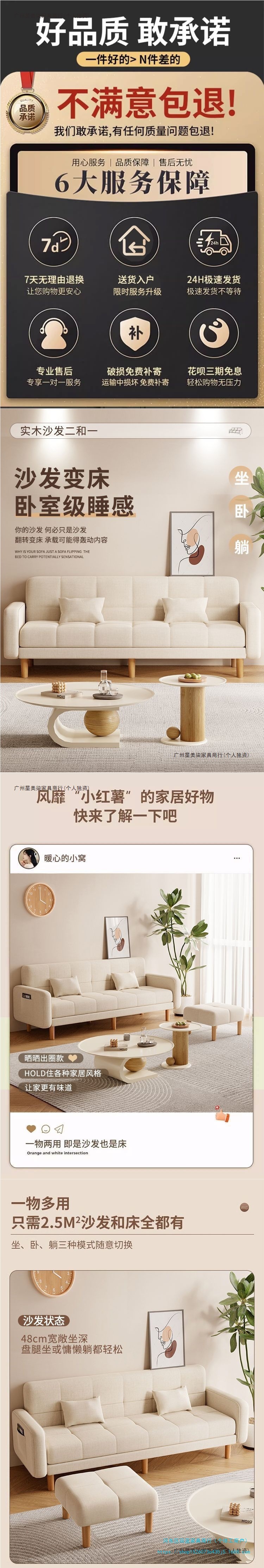 소형 거실용 소파 2024 새로운 스타일의 심플하고 모던한 3인용 임대실 겸용 접이식 소파 베드스토어 가기