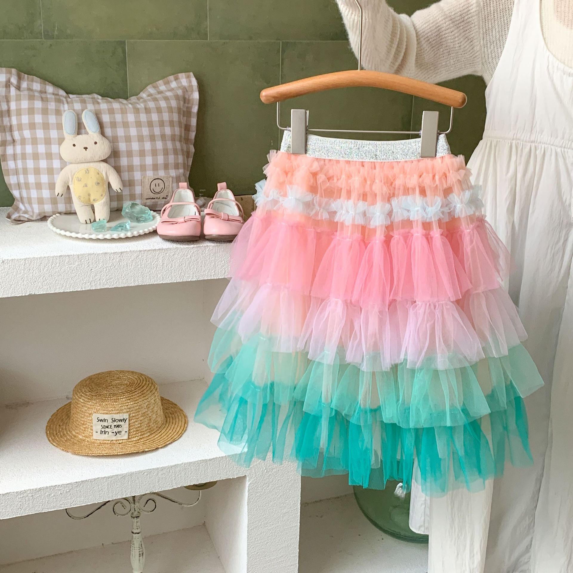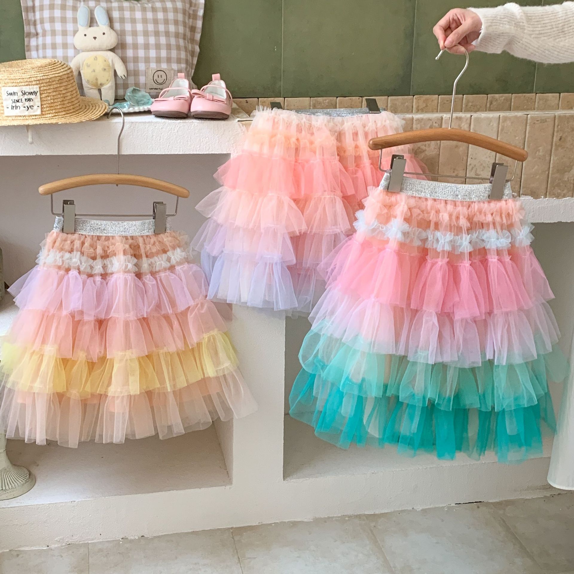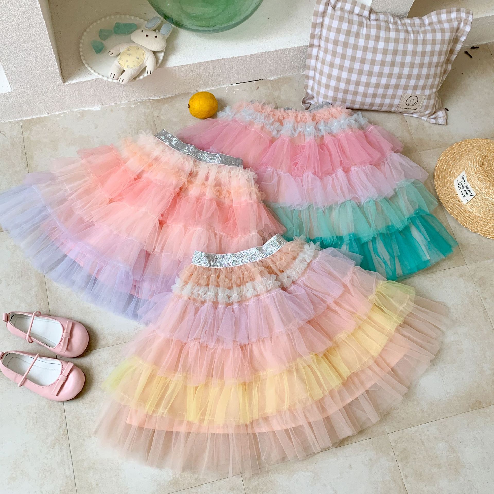 20245 어린이 스커트 어린이 레인보우 케이크 스커트 다목적 메쉬 퍼프 스커트 생일 공주 스커트 프로그램 댄스 스커트 허리스토어 가기
