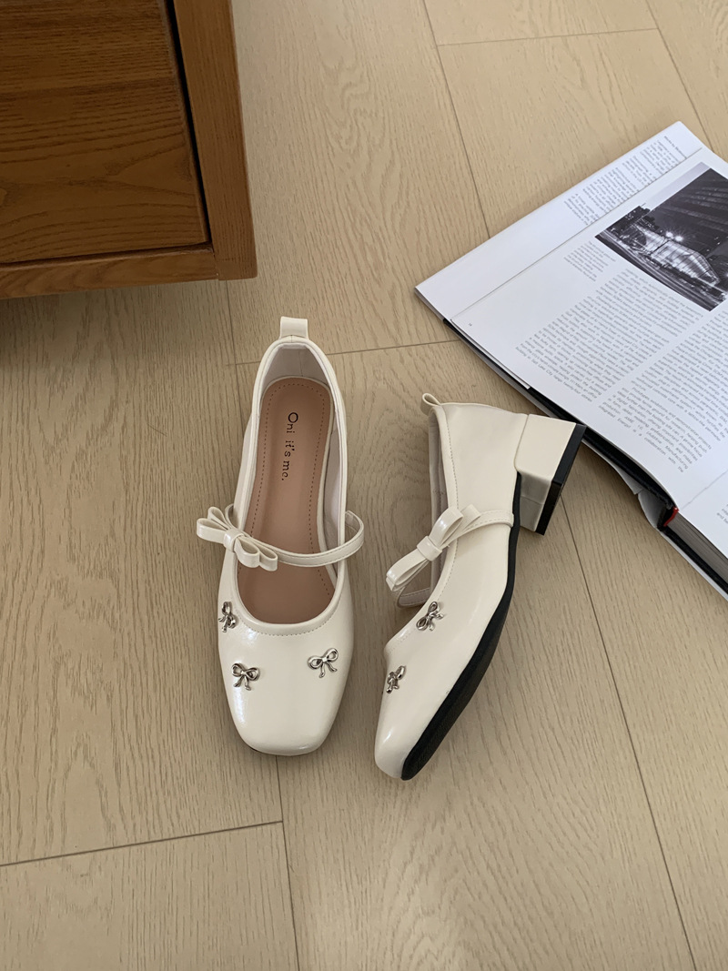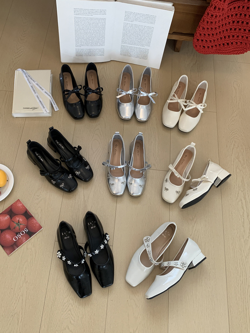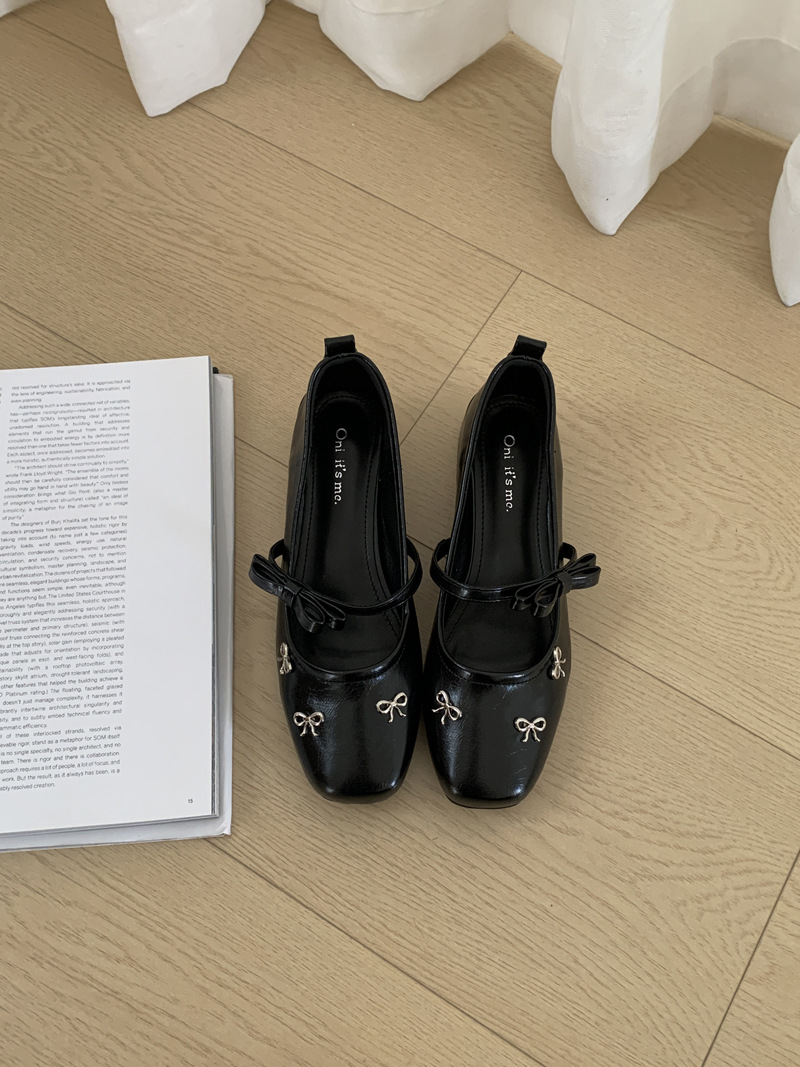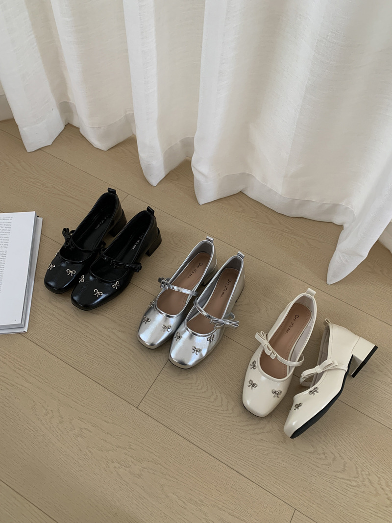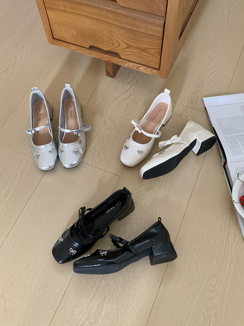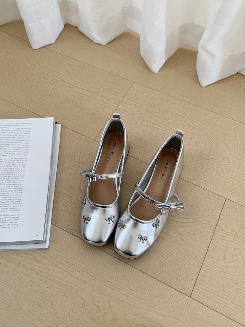여성용 디자인 실버 두꺼운 굽 싱글 슈즈, 프렌치 펌프스 메리 제인 슈즈, 원라인 버클 보우, 다용도 소형 가죽 슈즈, 트렌디스토어 가기