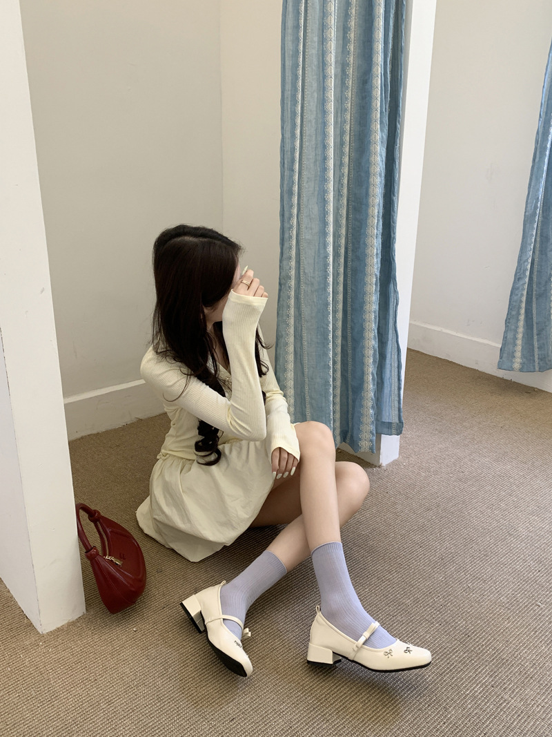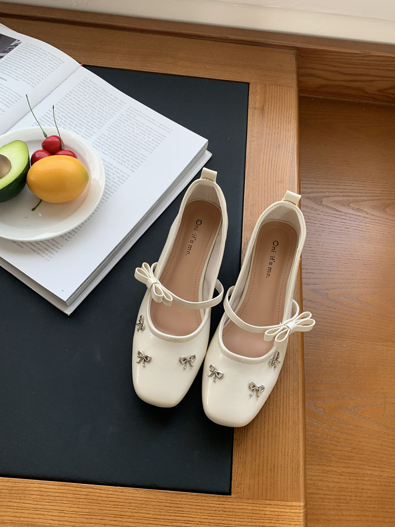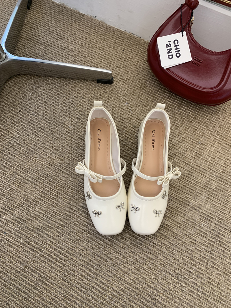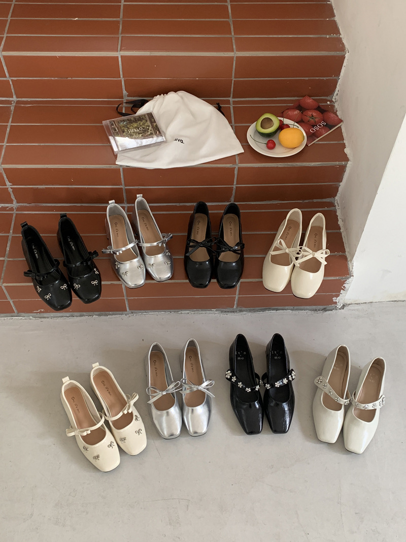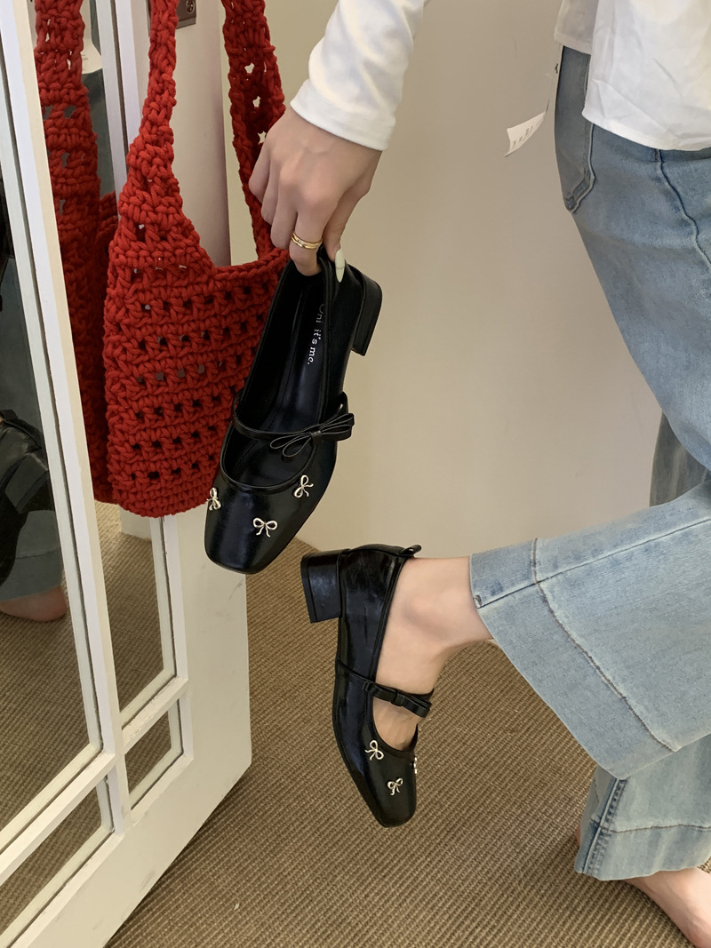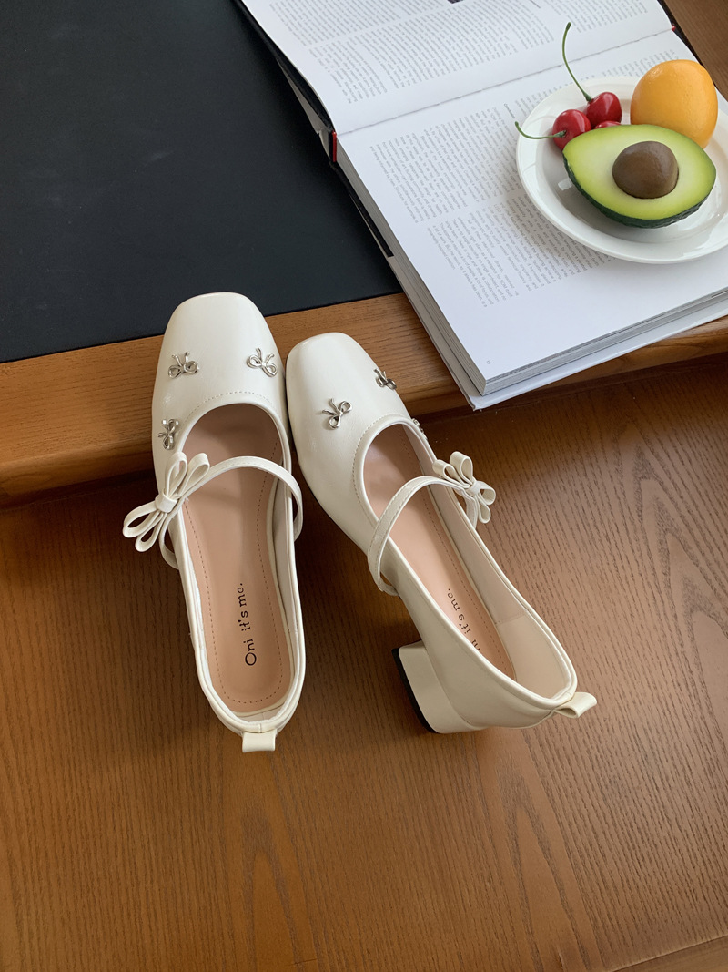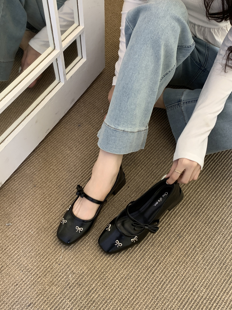 여성용 디자인 실버 두꺼운 굽 싱글 슈즈, 프렌치 펌프스 메리 제인 슈즈, 원라인 버클 보우, 다용도 소형 가죽 슈즈, 트렌디스토어 가기