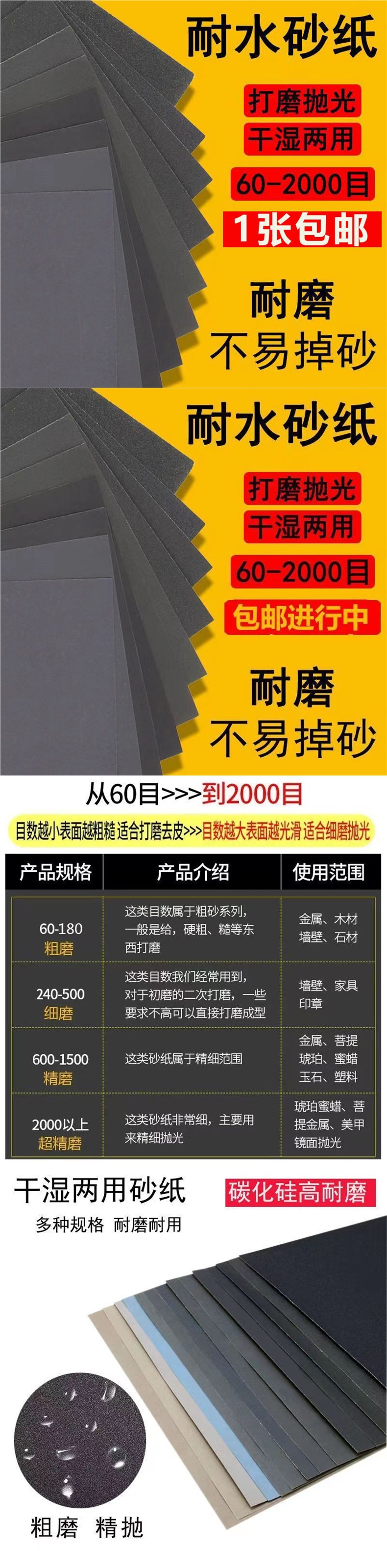 물사포, 물연마, 자동차 세척 및 방수, 60-2000사포, 미세사포, 벽면 연마 및 건식 연마