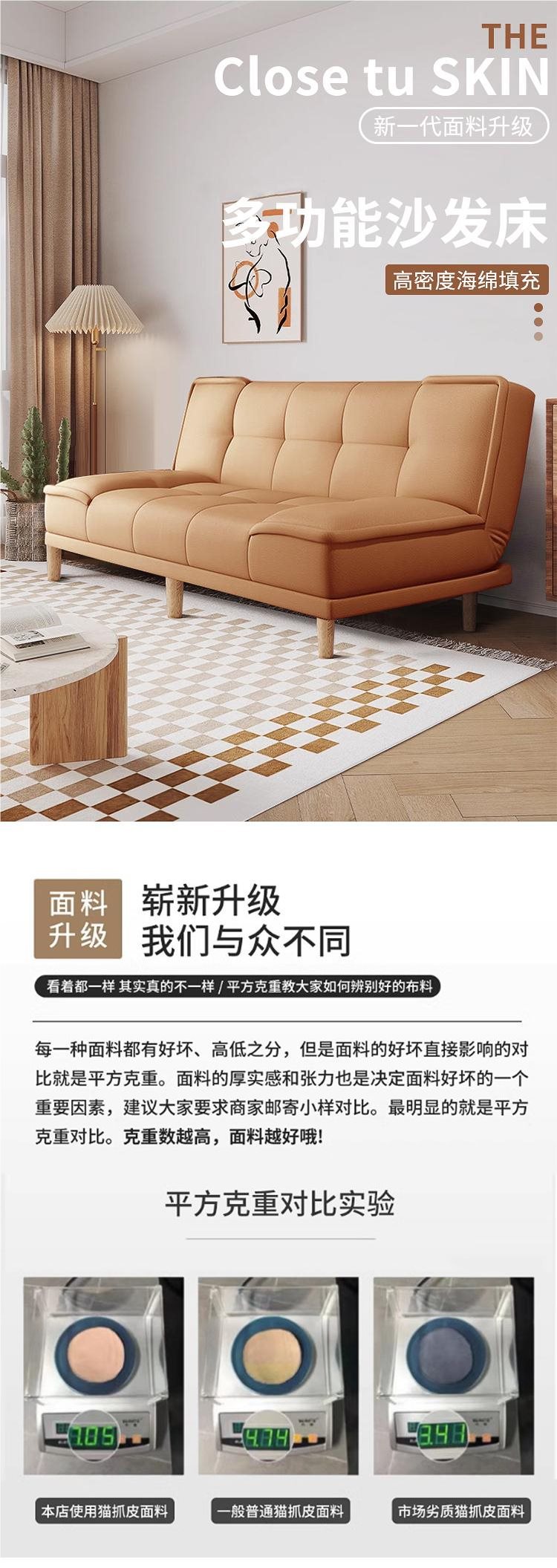 임대 주택 소파 고양이 발톱 가죽 간단한 소파 침대 일체형 이중 용도 작은 아파트 거실 침실 접이식 소파 아파트스토어 가기