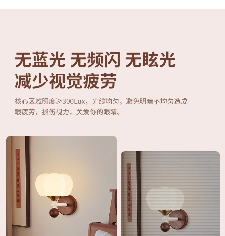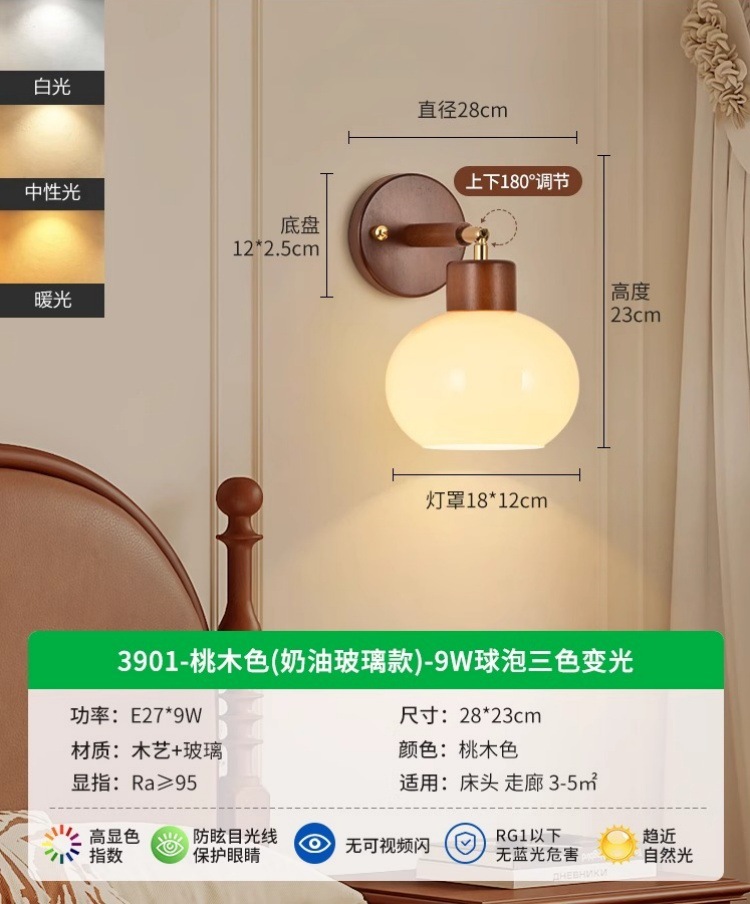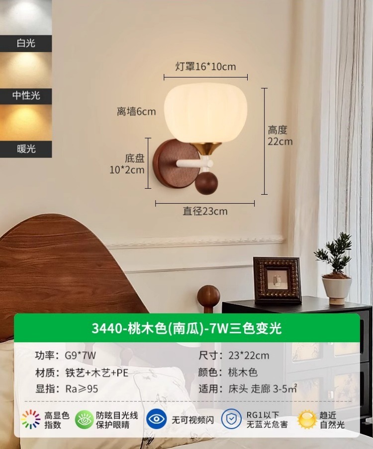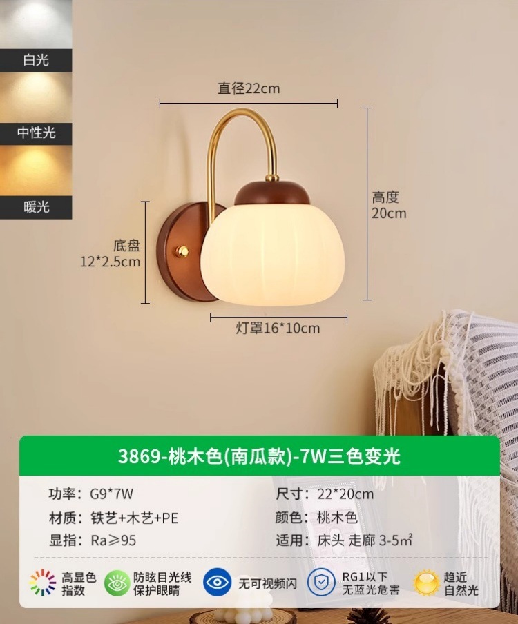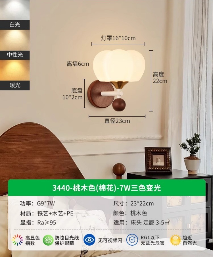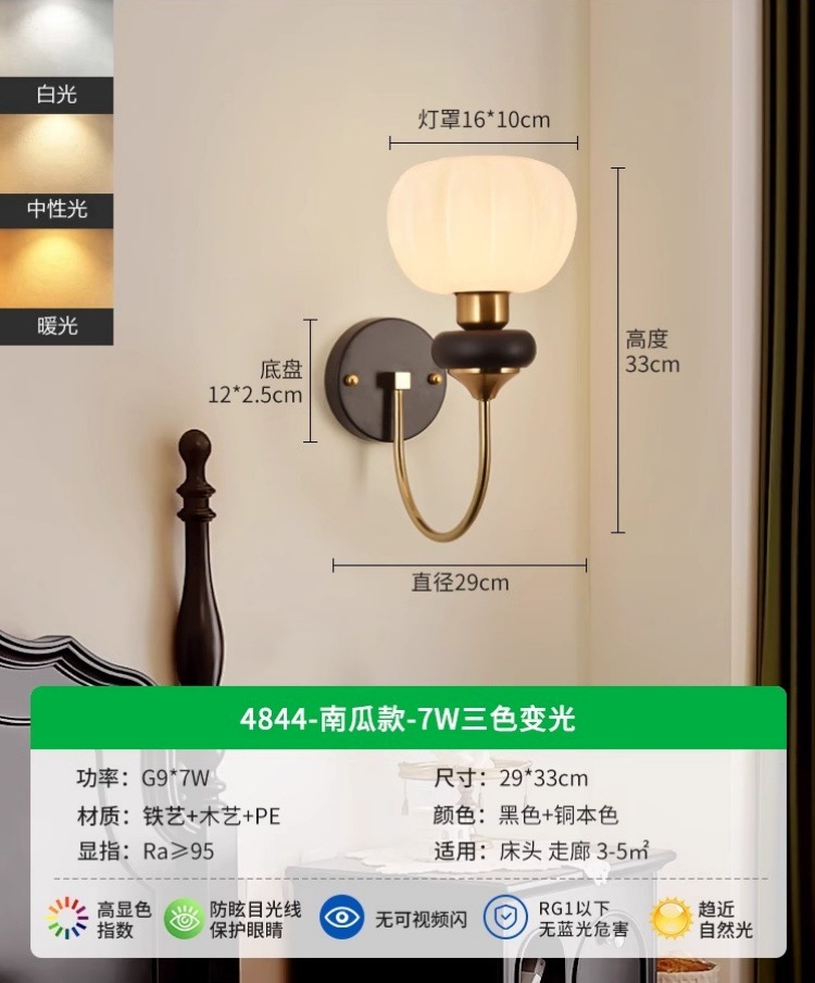 중세 스타일 침대 옆 벽 램프 크림 스타일 침실 램프 호박 어린이 방 램프 거실 TV 배경 벽 램프 1스토어 가기