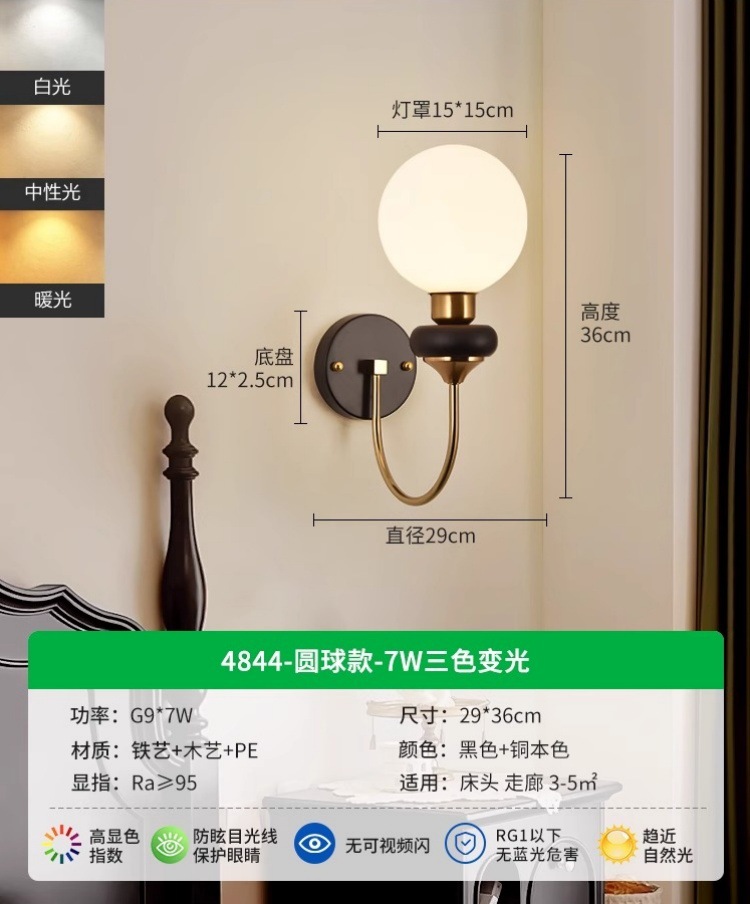 중세 스타일 침대 옆 벽 램프 크림 스타일 침실 램프 호박 어린이 방 램프 거실 TV 배경 벽 램프 1