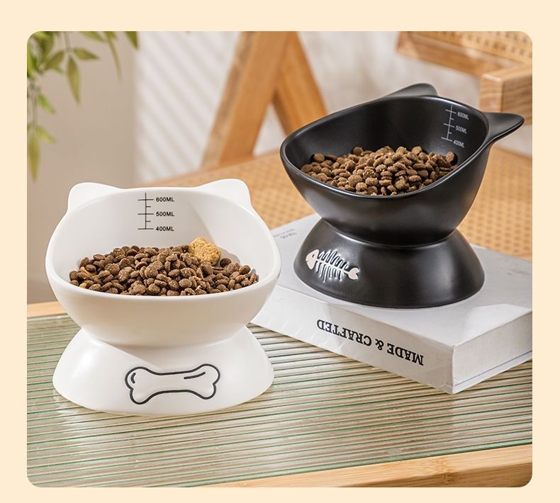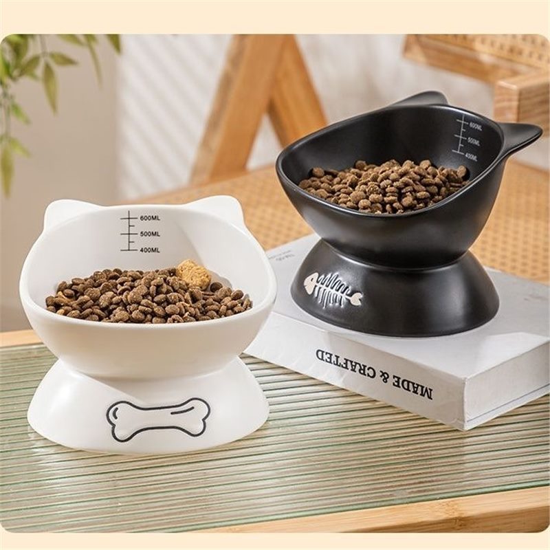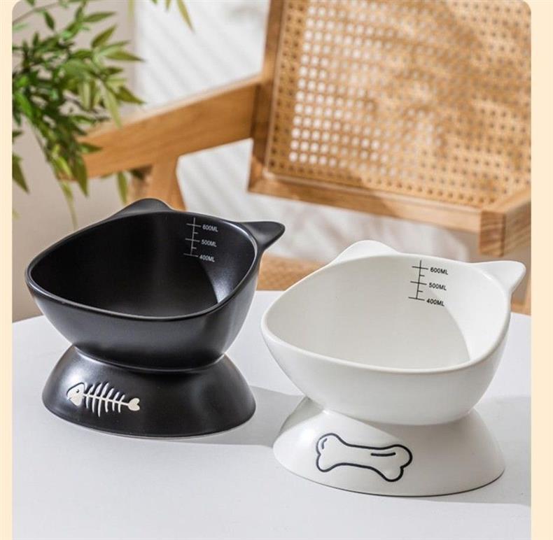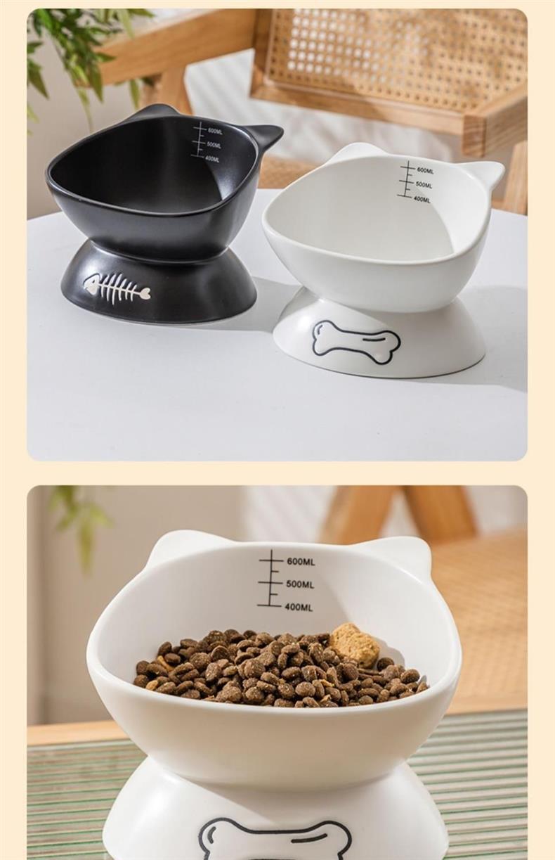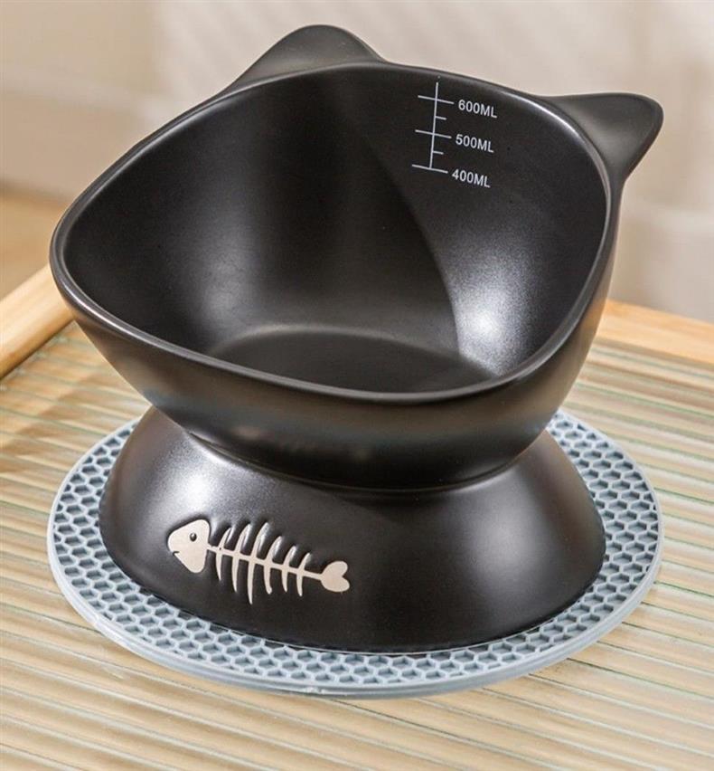 검은 고양이 그릇, 세라믹 고양이 사료 그릇, 높은 발과 경추를 보호하는 경사진 입, 넘어짐 방지, 개와 고양이를 위한 대구경 먹이 그릇