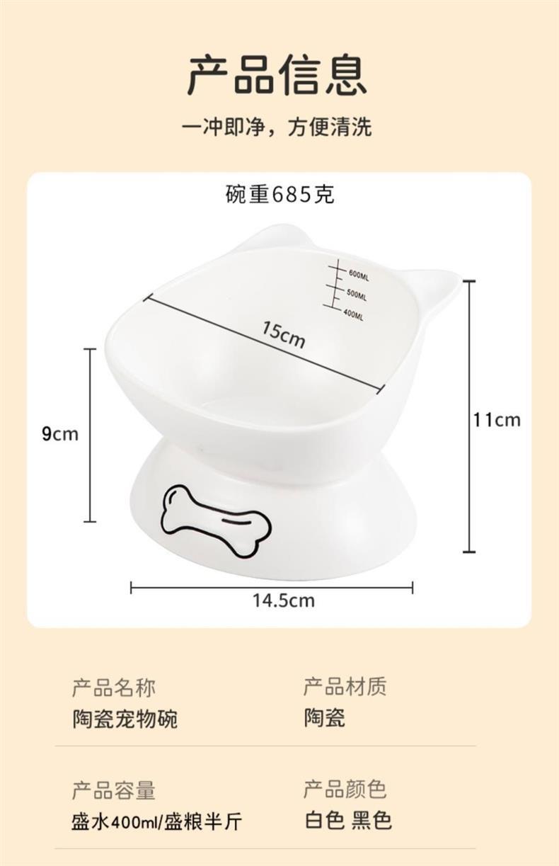 검은 고양이 그릇, 세라믹 고양이 사료 그릇, 높은 발과 경추를 보호하는 경사진 입, 넘어짐 방지, 개와 고양이를 위한 대구경 먹이 그릇스토어 가기