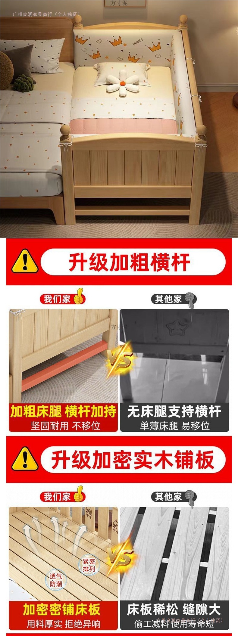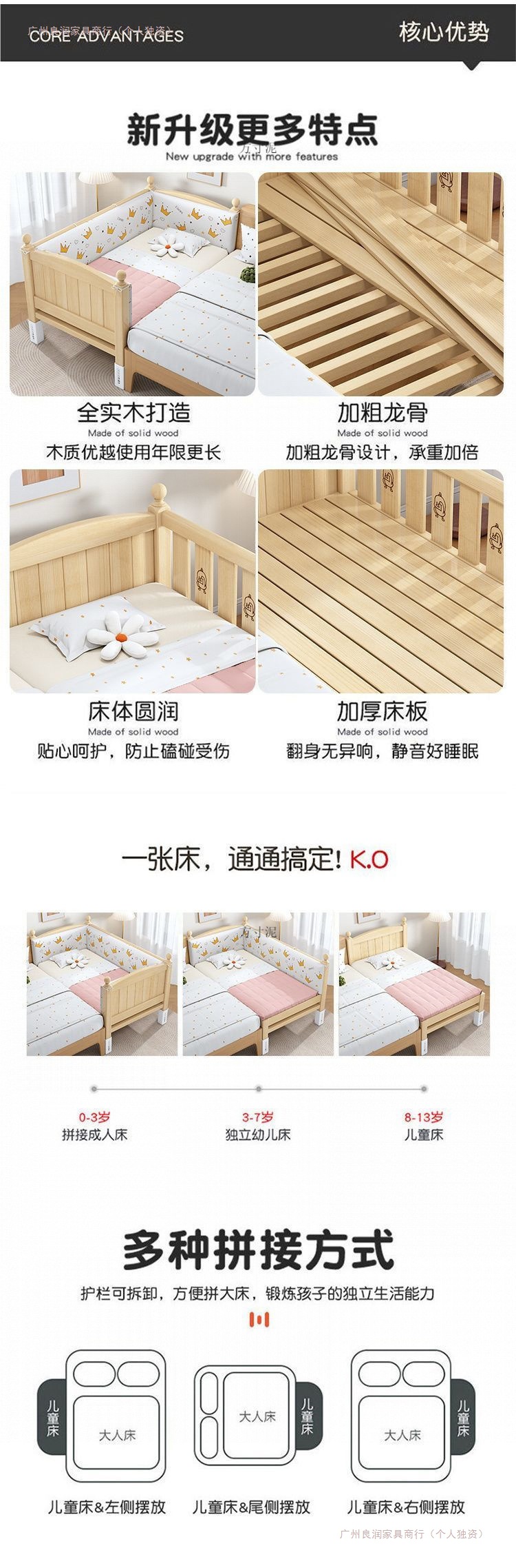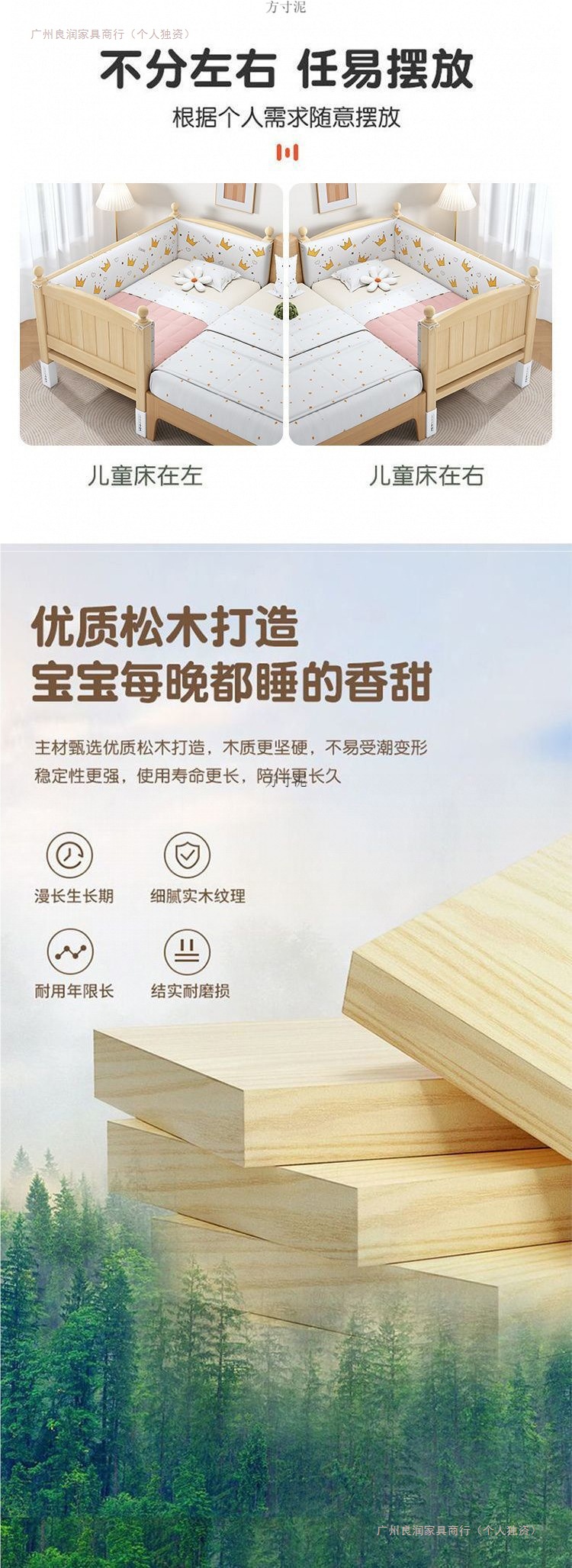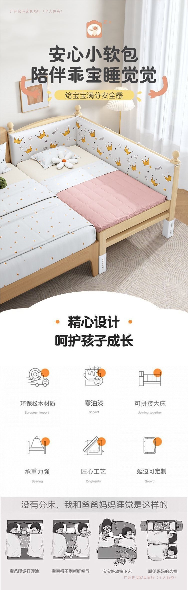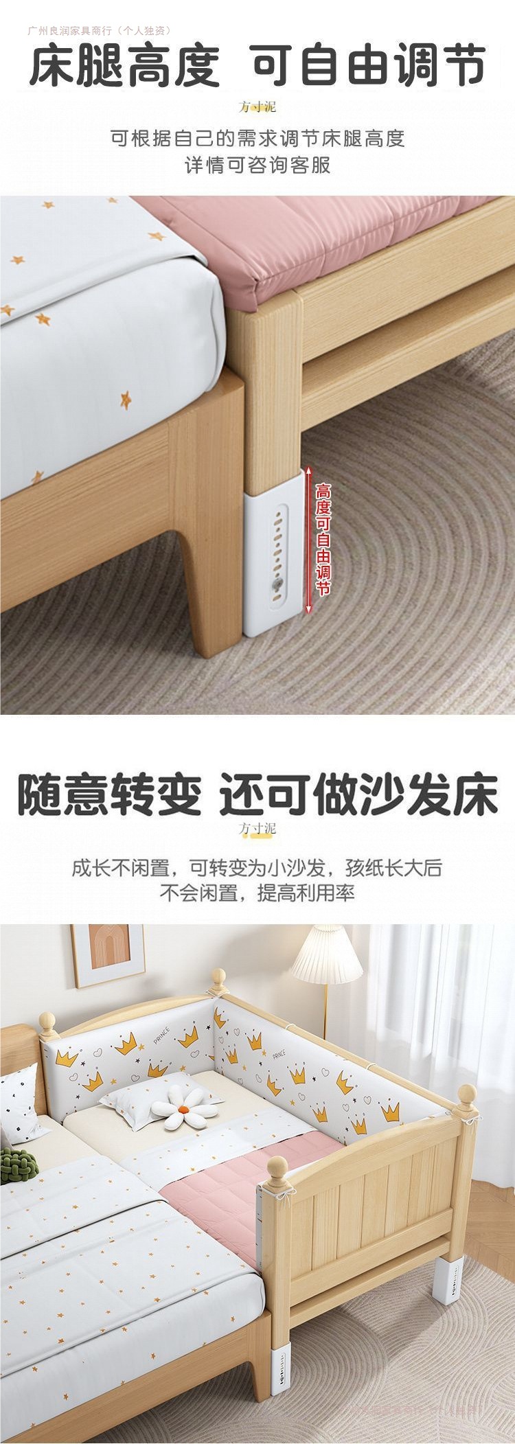 단단한 나무 어린이 접합 침대 높이 조절 가능 확장 침대 옆 침대 성인은 소년 소녀를 위해 잠을 잘 수 있습니다. 확장 아기 침대